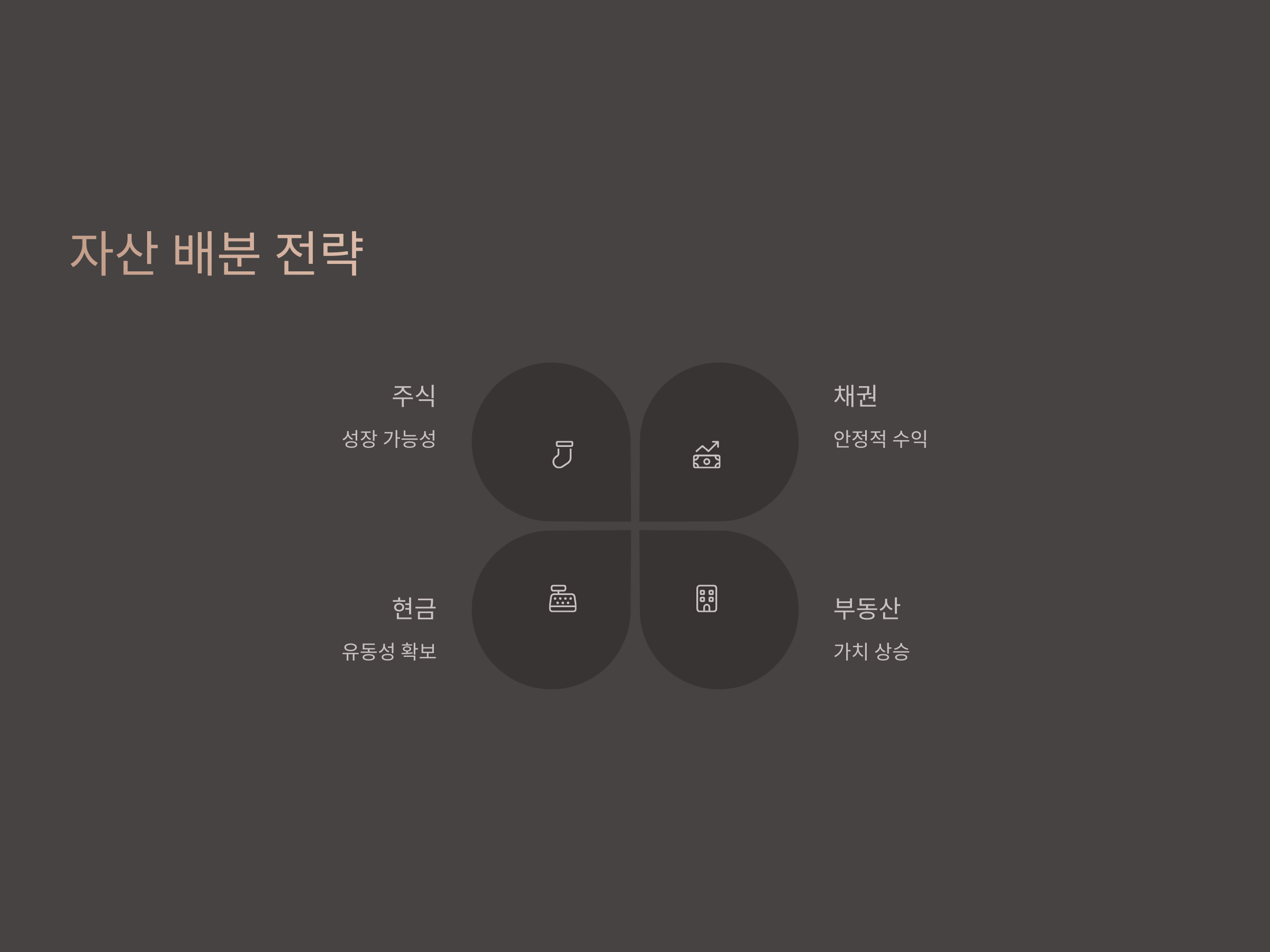 퇴직 후 경제적 독립을 달성하기 위해서는 자산 배분 전략을 잘 세워야 합니다. 자산 배분이란 주식, 채권, 부동산, 현금 등 여러 자산을 적절히 나누어 투자하는 전략으로, 투자 리스크를 줄이고 안정적인 수익을 추구하는 방법입니다. 이를 통해 한 자산의 가격 변동에 따른 위험을 최소화할 수 있습니다.