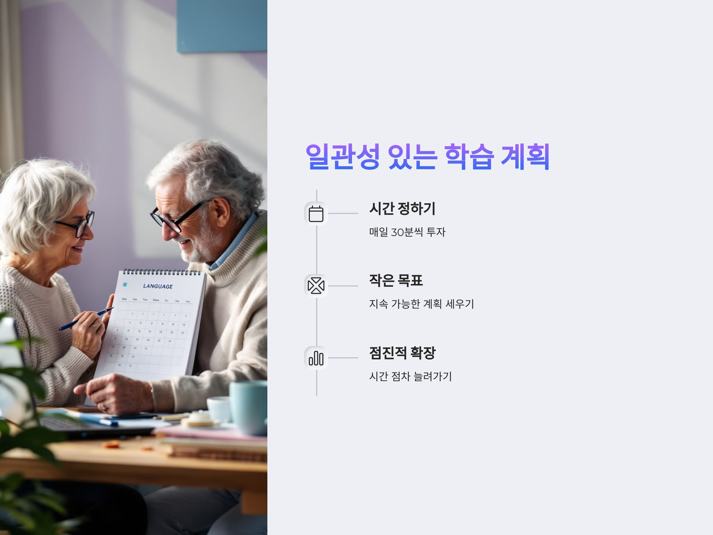 퇴직 후에는 일정을 자유롭게 조정할 수 있기 때문에, 외국어 학습을 위한 일관성 있는 계획을 세우는 것이 중요합니다. 예를 들어, 매일 30분씩 외국어 학습에 시간을 투자하기로 결정하면, 그 시간을 엄수하는 것이 핵심입니다. 이를 통해 시간이 지나면서 자연스럽게 학습이 습관이 되어가며, 일정한 진전을 이룰 수 있습니다.