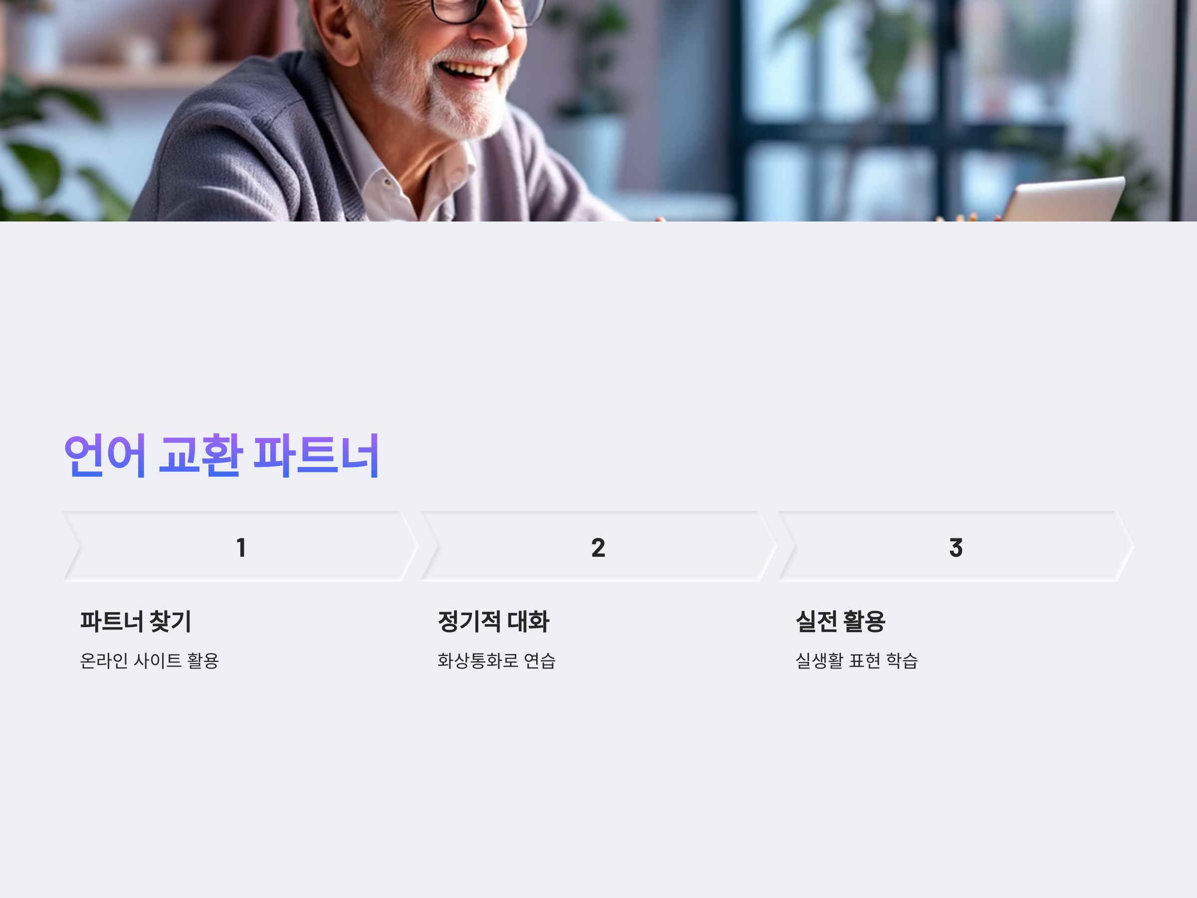 혼자서 학습하는 것도 좋지만, 언어를 실제로 사용할 기회를 만들어 보는 것이 중요합니다. 언어 교환 파트너와 함께 대화하는 것은 외국어 학습에서 큰 도움이 됩니다. 특히 퇴직 후에는 교환 파트너와 일정한 시간을 정해두고 대화를 나누면, 학습의 동기 부여가 될 수 있습니다.