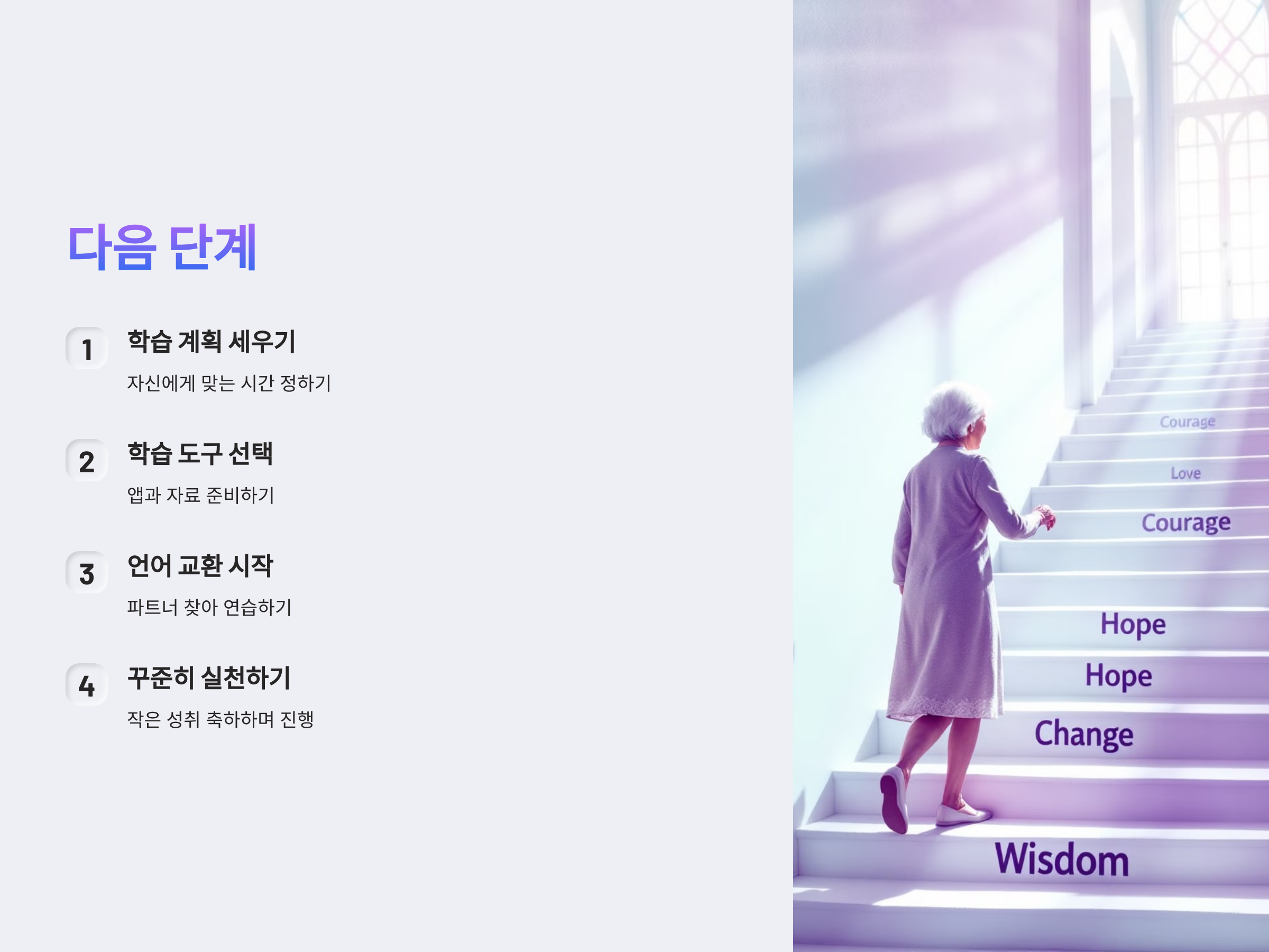 퇴직 후 외국어를 배우는 가장 중요한 핵심은 꾸준함입니다. 외국어는 하루아침에 배우는 것이 아니기 때문에, 인내심을 가지고 꾸준히 학습하는 것이 중요합니다. 처음에는 어려움을 겪을 수 있지만, 시간이 지남에 따라 점차 익숙해지고 실력이 쌓이게 됩니다.