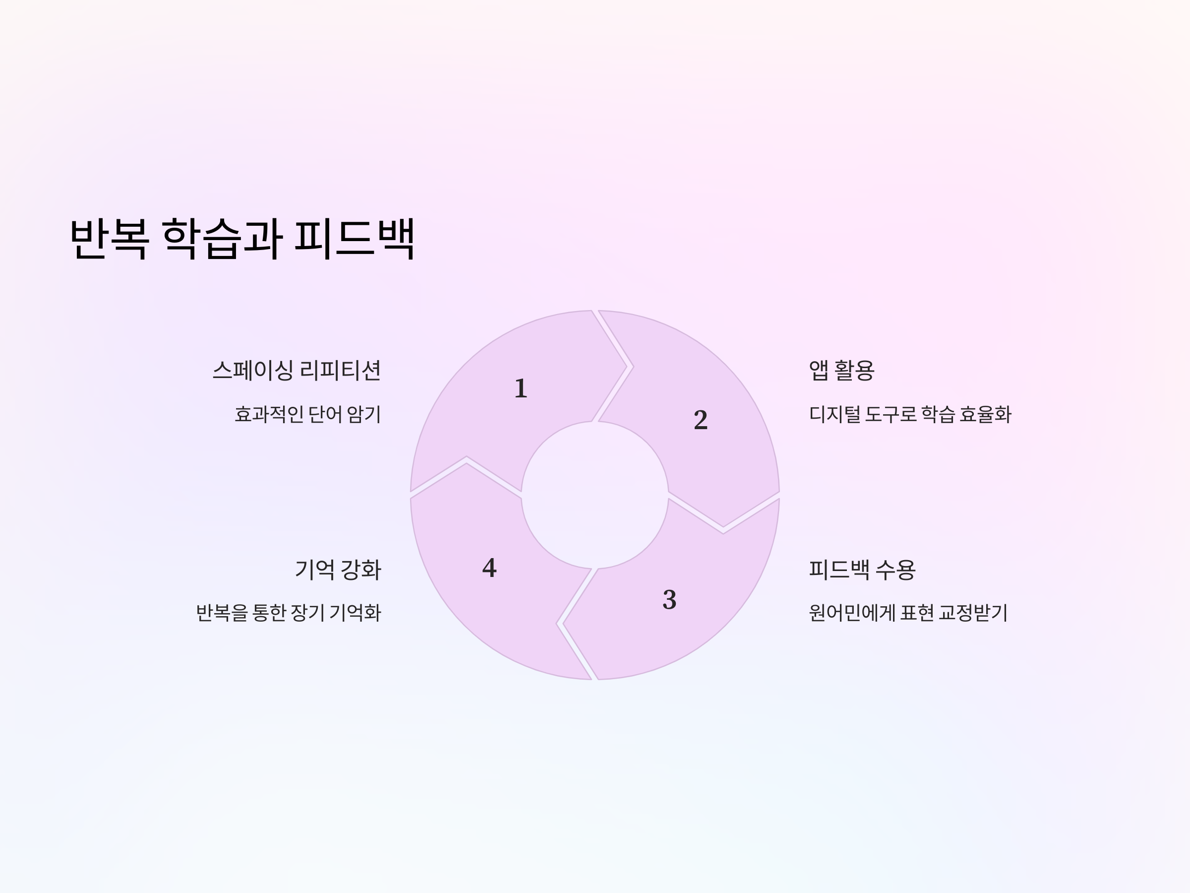 언어 학습에서 반복은 기억을 강화하는 데 필수적입니다. 스페이싱 리피티션 시스템(Spaced Repetition System)을 활용한 단어 암기 앱을 사용하면 효과적입니다. 또한, 원어민이나 고급 학습자에게 피드백을 받으며 잘못된 표현이나 발음을 수정하는 과정이 필요합니다. citeturn0search1