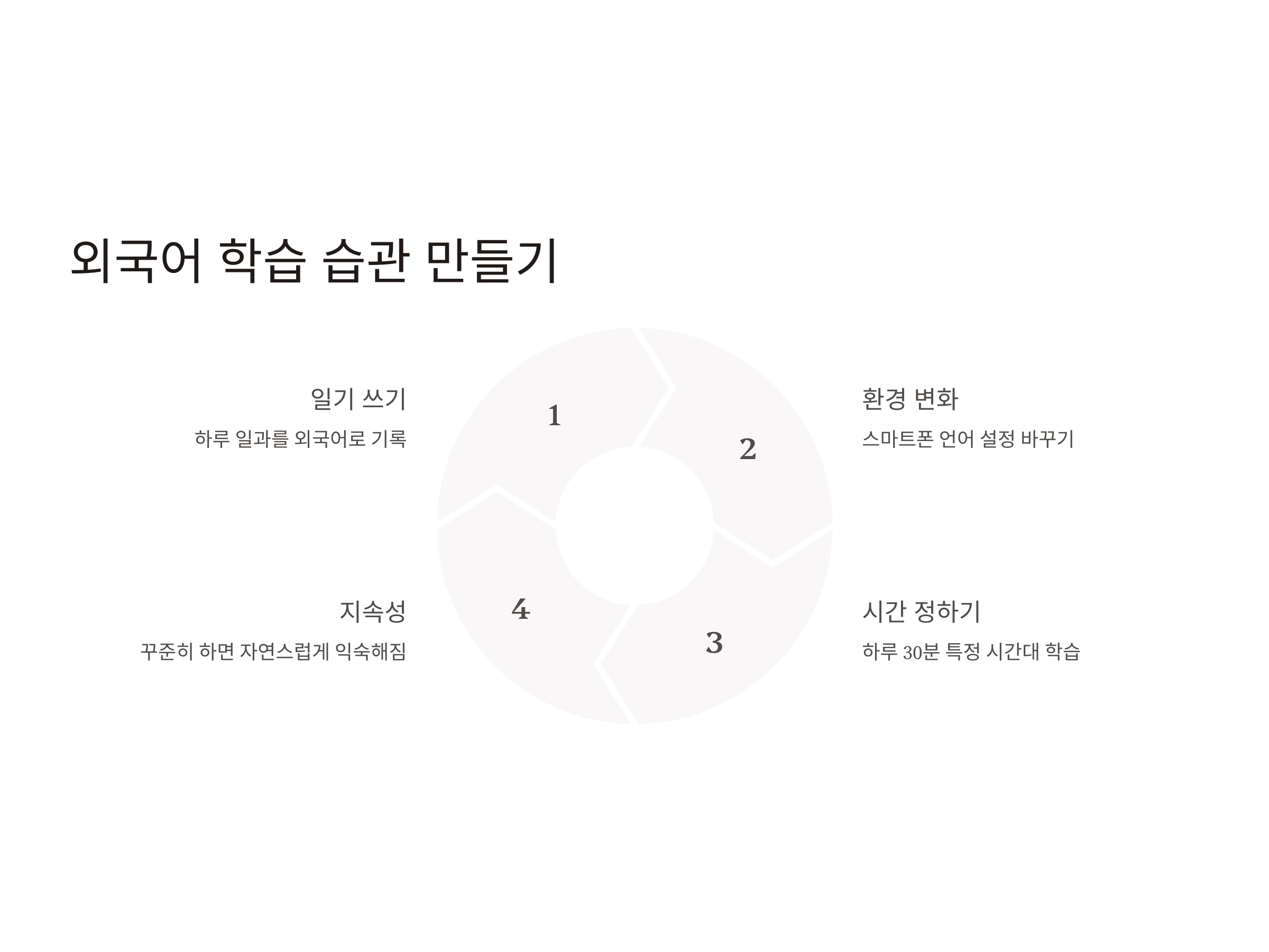 이렇게 실생활에 외국어 학습을 자연스럽게 녹이면 꾸준히 공부할 수 있습니다.