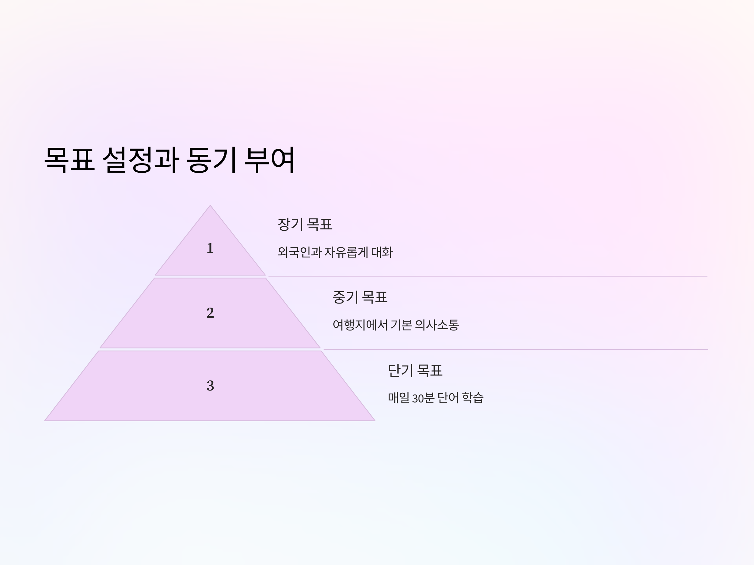이렇게 목표를 나누어 학습하면 쉽게 동기를 유지할 수 있습니다.
