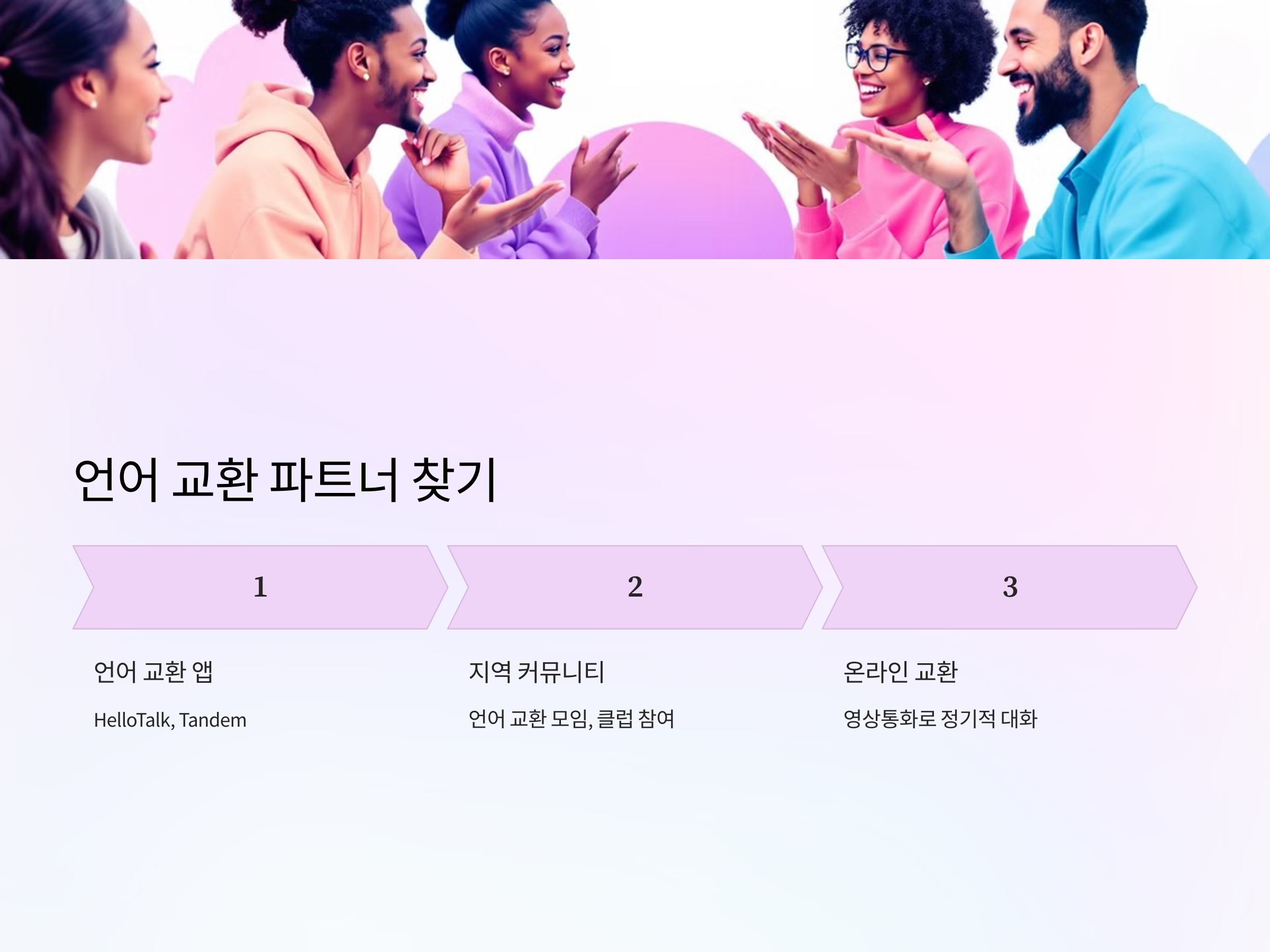 - 지역 커뮤니티: 언어 교환 모임이나 클럽 참여