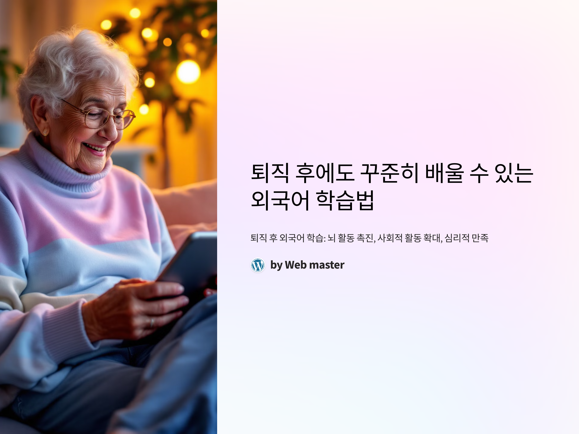 퇴직 후 외국어 학습은 새로운 삶의 활력을 불어넣고, 지적 호기심을 충족시킬 수 있는 멋진 방법입니다. 꾸준한 학습과 일상 속에서의 활용을 통해 여러분도 외국어를 능숙하게 구사하는 모습을 상상할 수 있을 것입니다. 오늘부터 바로 시작해보세요!