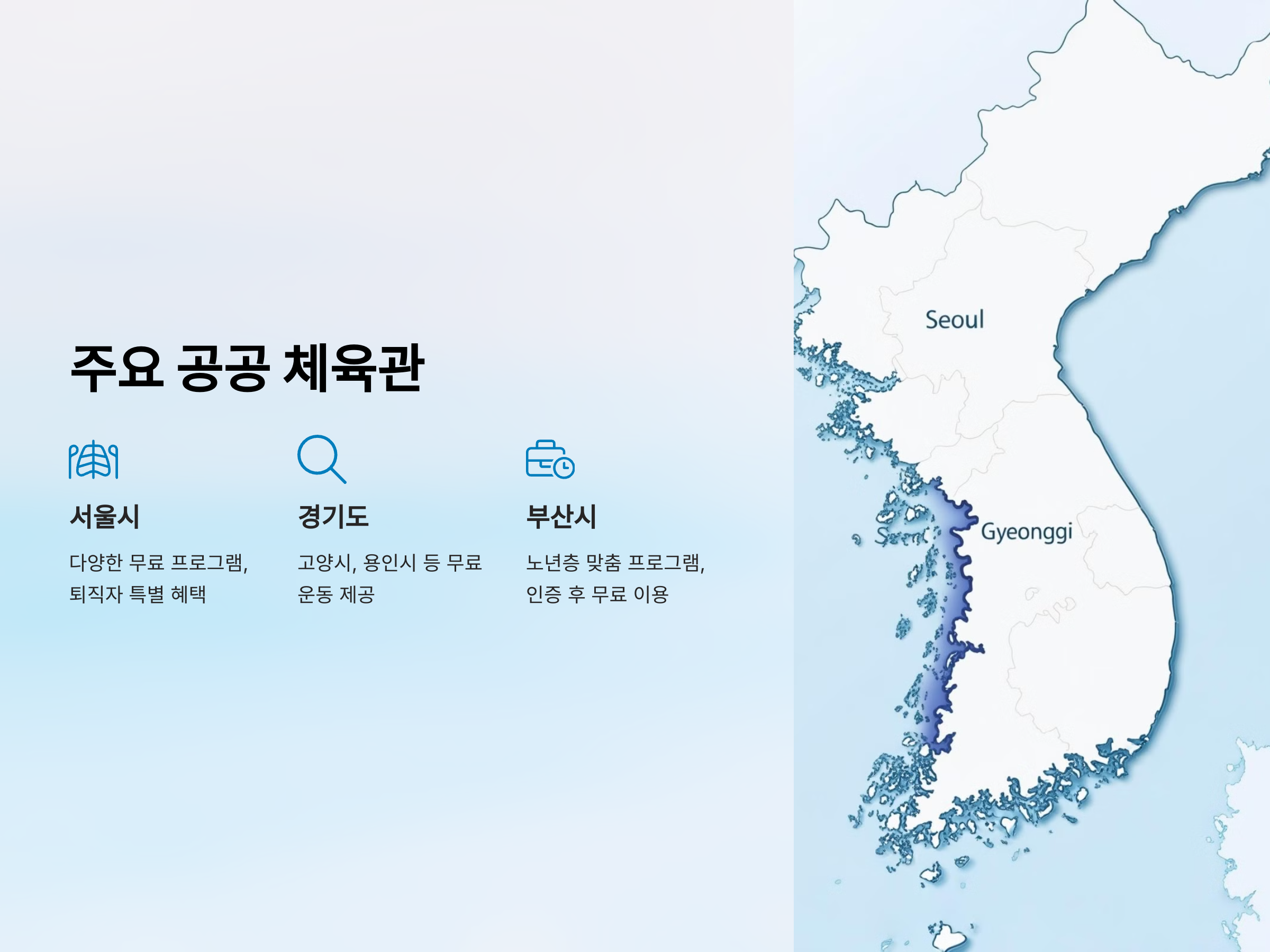 부산시 역시 퇴직 후 무료 이용할 수 있는 체육관이 많습니다. 부산은 다양한 운동 프로그램을 제공하며, 특히 노년층을 위한 맞춤형 프로그램도 제공됩니다. 퇴직자는 별도로 인증 절차를 거친 후 무료로 이용할 수 있습니다.