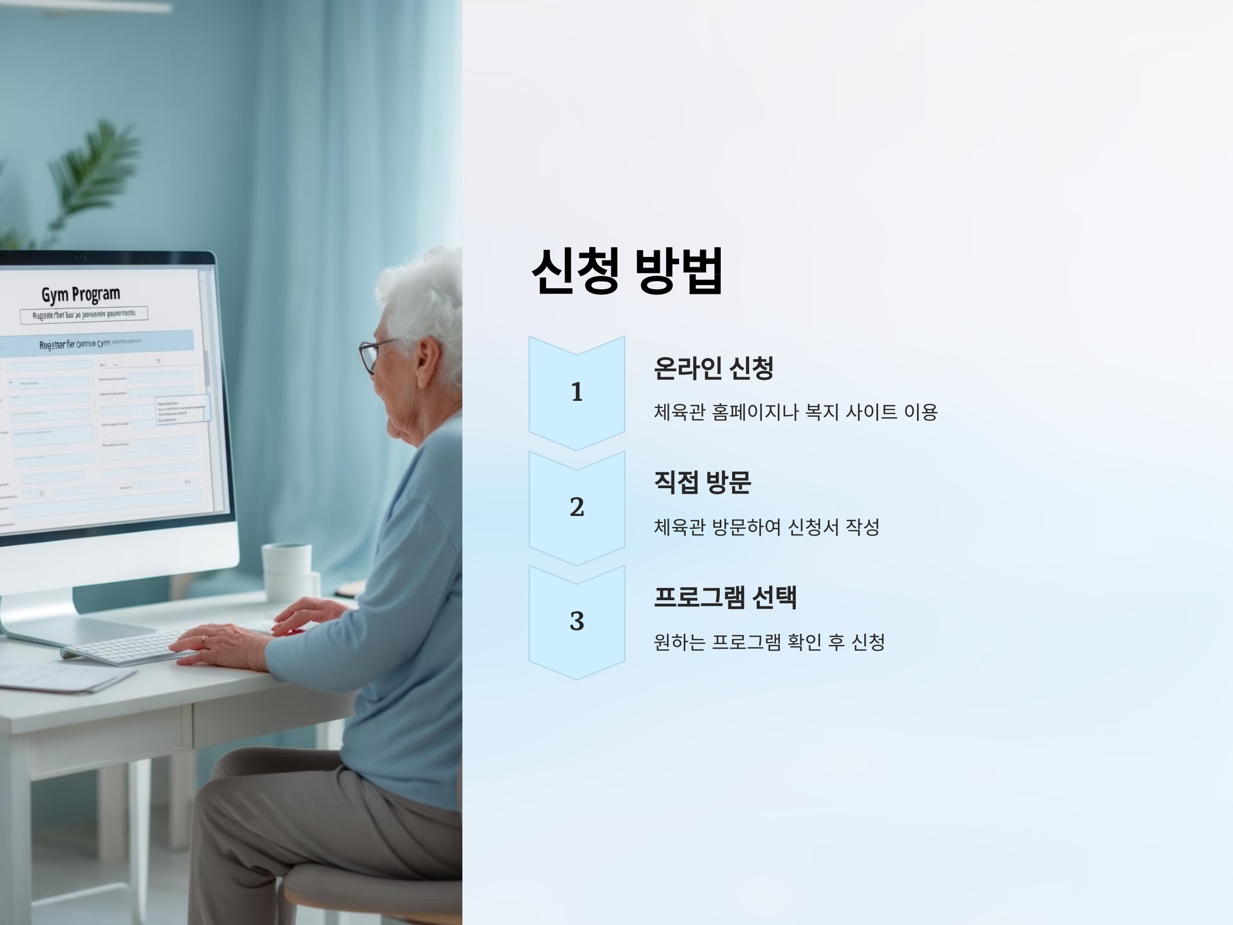 - 온라인 신청: 많은 체육관에서는 인터넷을 통한 신청을 받고 있습니다. 각 지자체의 체육관 홈페이지나 복지 관련 사이트에서 신청할 수 있습니다.