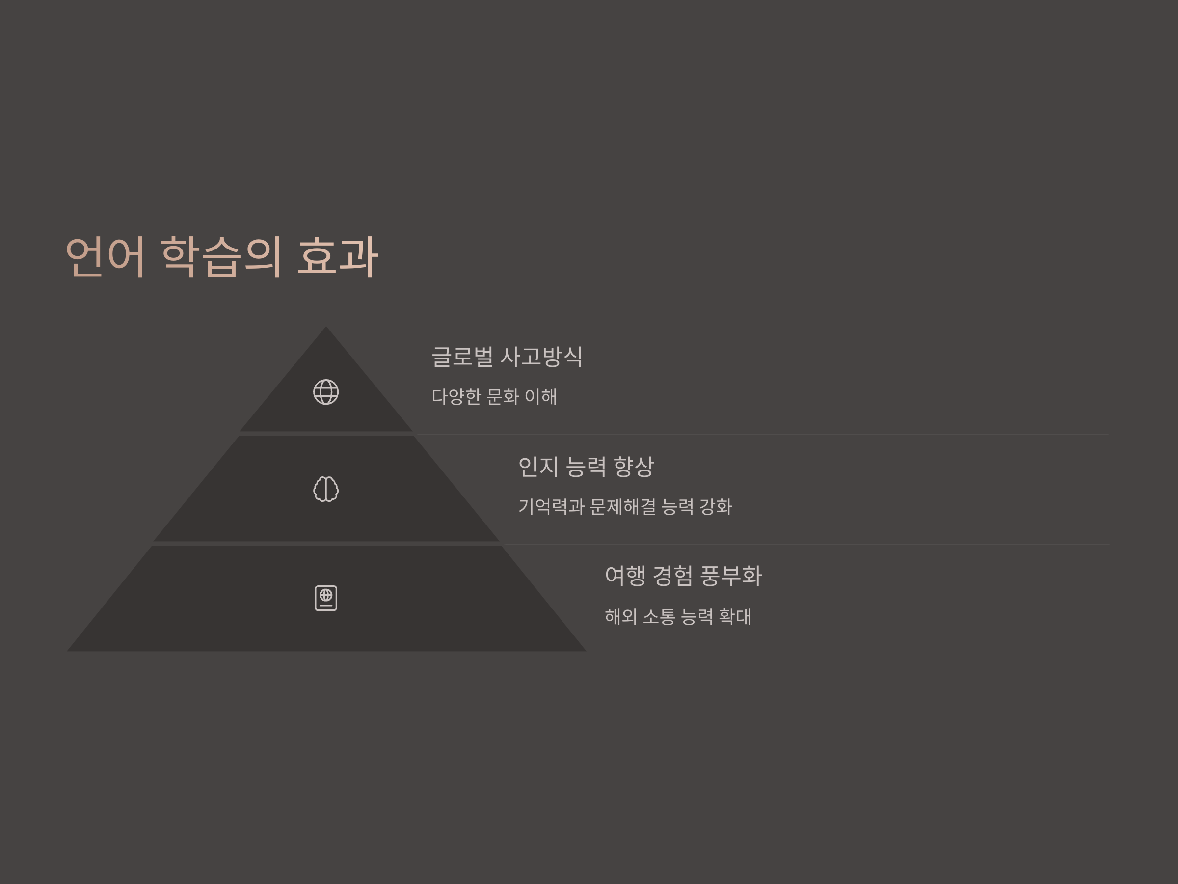 외국어를 배우면 직업적 기회뿐만 아니라, 개인적인 만족도도 크게 향상됩니다. 해외에서의 여행 경험이 풍부해지고, 다양한 국가의 사람들과의 소통이 가능해지면서 새로운 인간관계를 쌓을 수 있습니다. 또한, 외국어를 배우는 과정은 뇌를 자극하고, 기억력과 문제 해결 능력을 키우는 데도 큰 도움이 됩니다. 언어 능력을 높이면 해외 취업 기회도 확장될 수 있으며, 국제적인 프로젝트나 커뮤니케이션에서 경쟁력을 가질 수 있습니다.