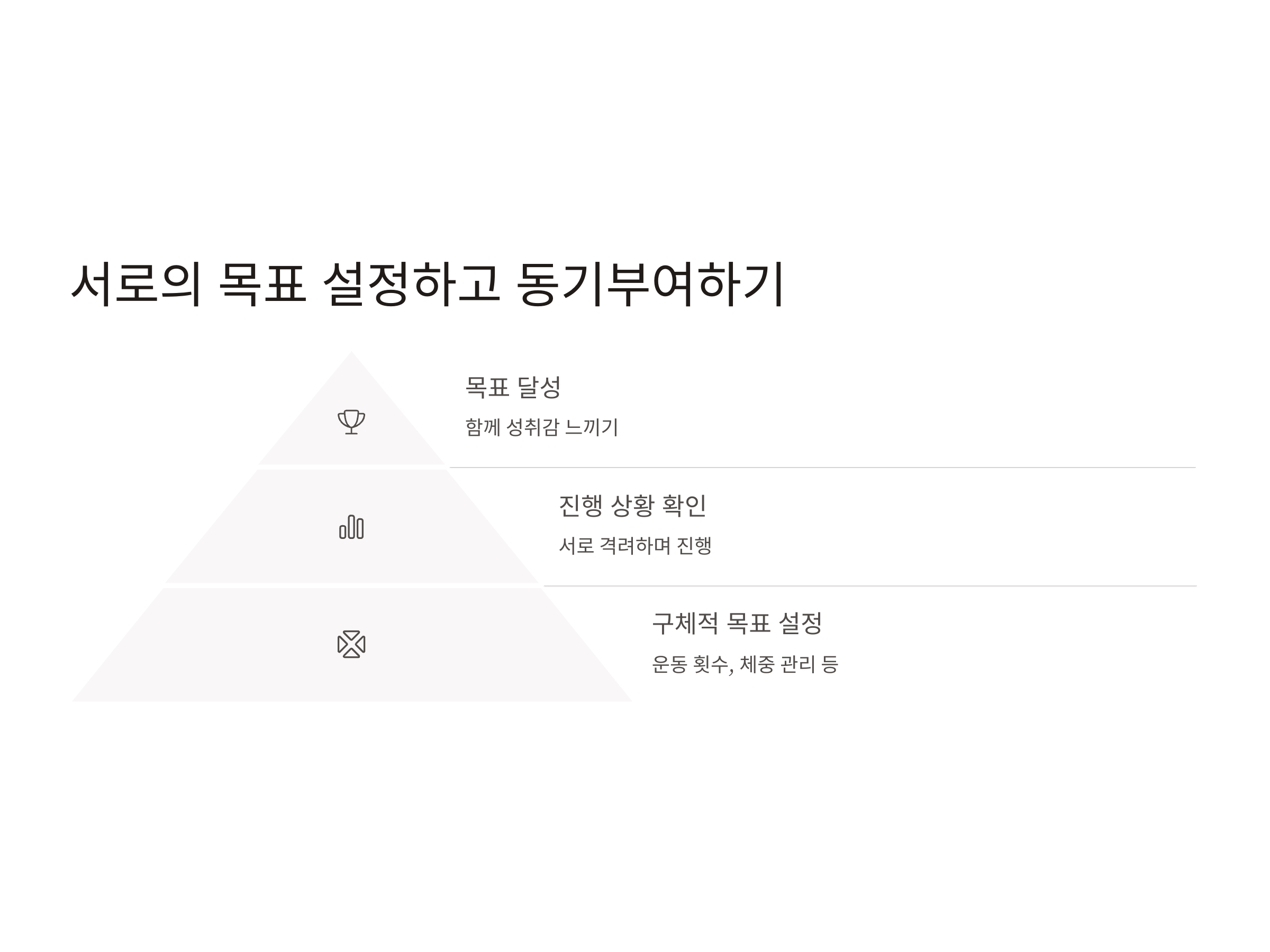 이러한 목표를 달성하기 위해서는 서로를 격려하고, 작은 성과라도 함께 축하하는 것이 중요합니다. 부부가 함께 목표를 설정하고 이를 달성하는 과정은 단순히 건강을 유지하는 것뿐만 아니라, 부부의 관계를 더욱 돈독하게 만들어줄 수 있습니다.