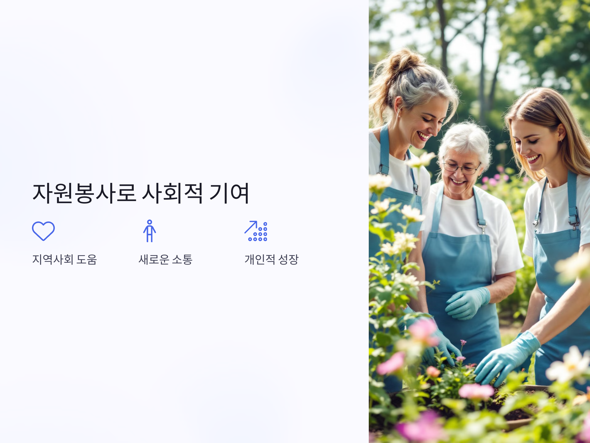 퇴직 후 시간을 어떻게 보낼지 고민하는 사람들에게 자원봉사는 훌륭한 선택이 될 수 있습니다. 자원봉사는 남을 돕는 활동이지만, 그로 인해 자신도 많은 것을 배우고, 다양한 사람들과의 만남을 경험할 수 있습니다. 봉사 활동을 통해 나의 경험과 지식을 나누고, 이를 통해 새로운 사람들과 자연스럽게 소통할 수 있습니다.