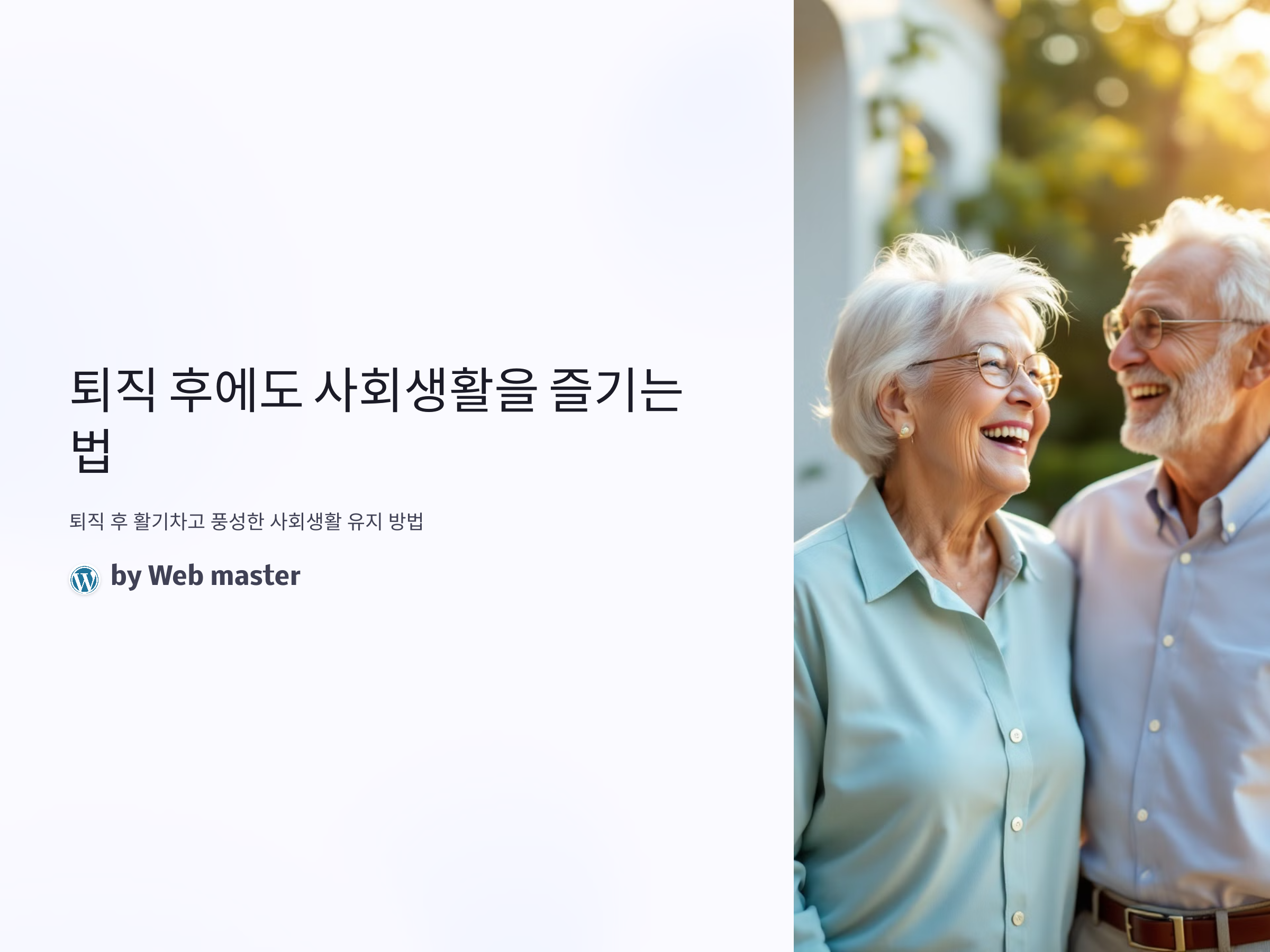 퇴직 후 사회생활을 즐기는 법은 무엇보다도 "적극적인 자세"가 중요합니다. 새로운 사람들과의 만남과 사회적 활동을 통해 더욱 풍성한 삶을 만들어갈 수 있습니다. 퇴직 후에도 활발하게 사회적 관계를 유지하며, 자신만의 의미 있는 시간을 보내세요. 이 글에서 소개한 방법들을 활용해 퇴직 후에도 건강하고 활기찬 사회생활을 즐기시길 바랍니다!
