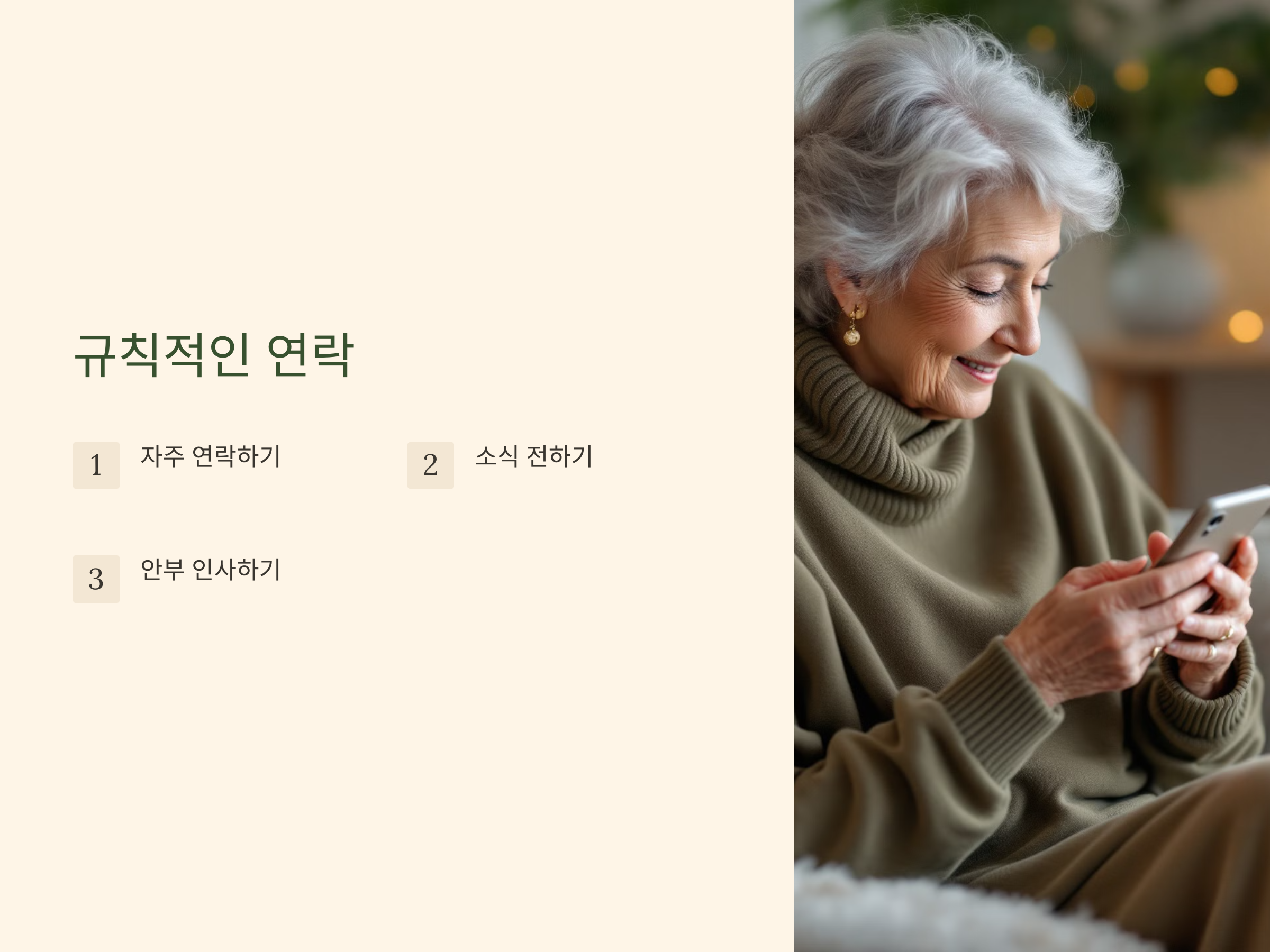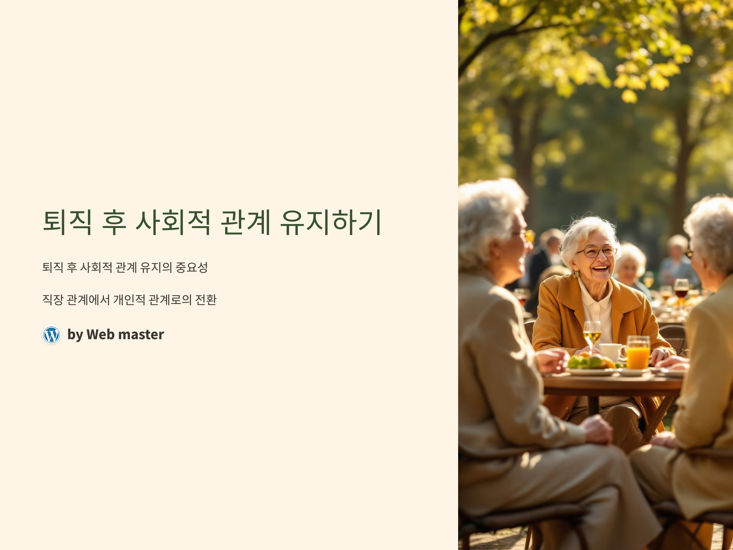단순한 메시지나 전화를 통해 "잘 지내고 있니?"라는 한 마디가 서로의 관계를 지속적으로 이어가게 합니다. 이렇게 작은 노력들이 쌓이면, 퇴직 후에도 사회적 관계는 건강하게 유지될 수 있습니다.