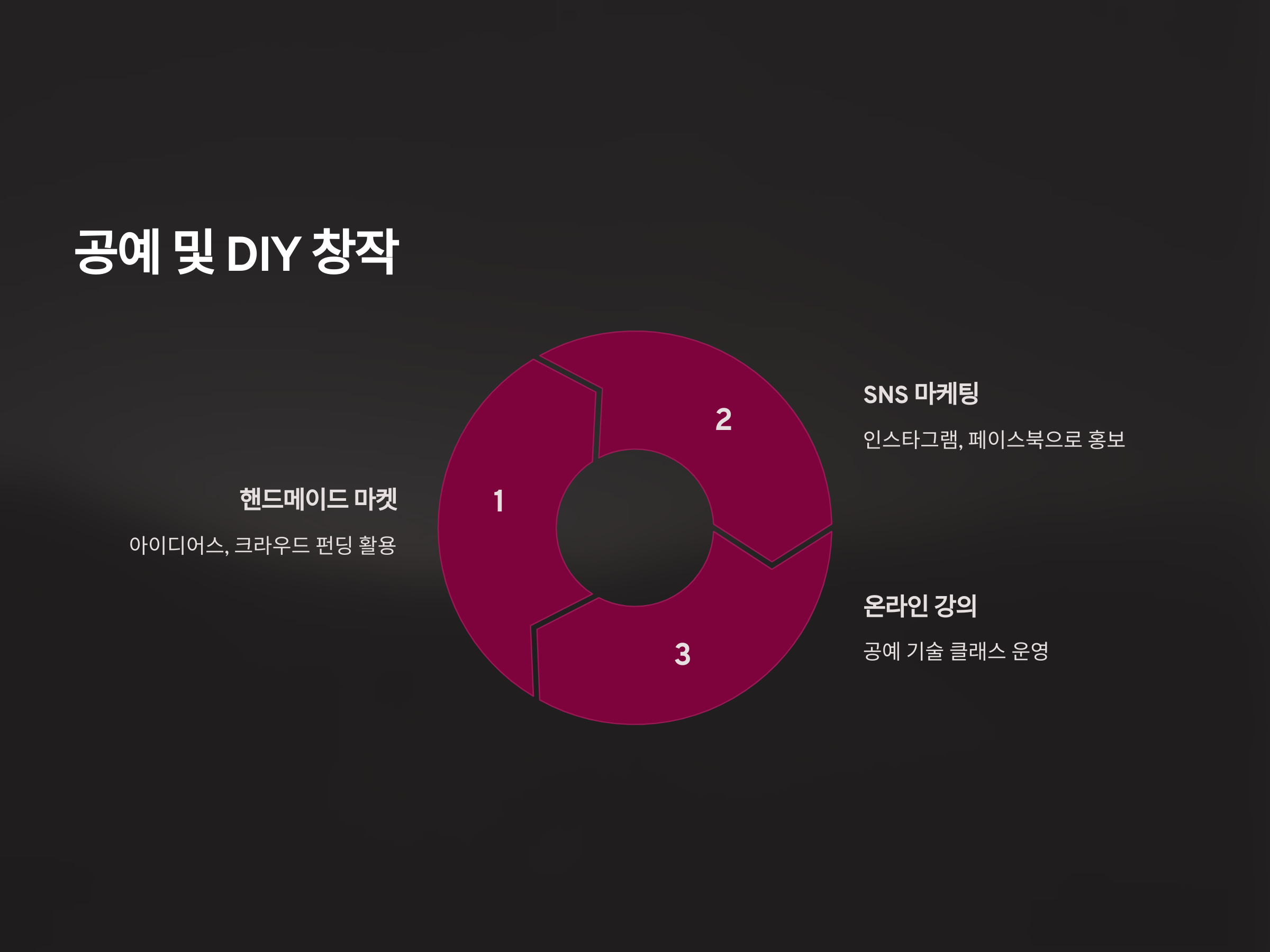 - 온라인 강의 개설: 공예 기술을 배울 수 있는 온라인 클래스를 운영할 수도 있습니다.