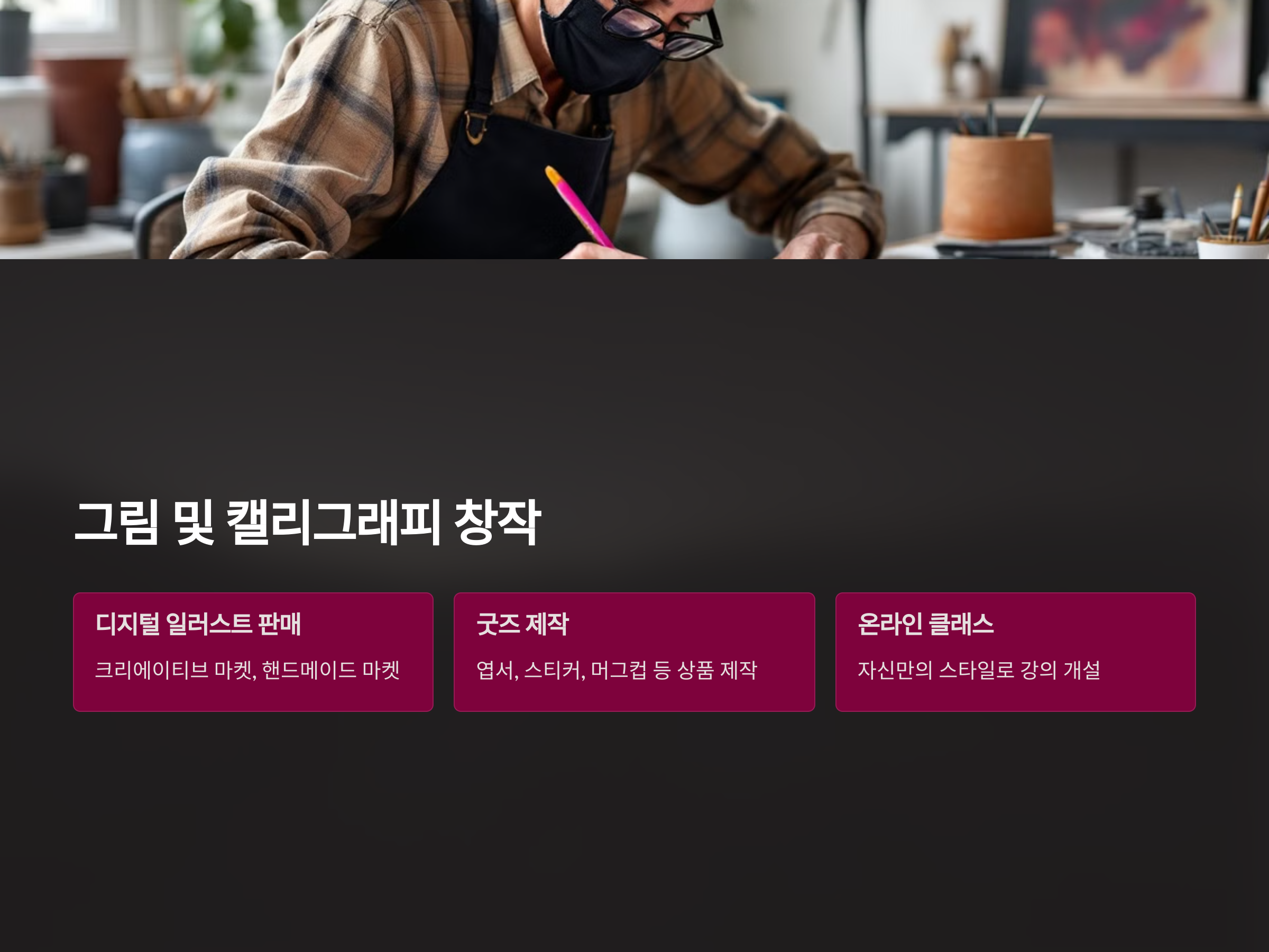 - 디지털 일러스트 판매: 크리에이티브 마켓, 핸드메이드 마켓에서 작품을 판매할 수 있습니다.