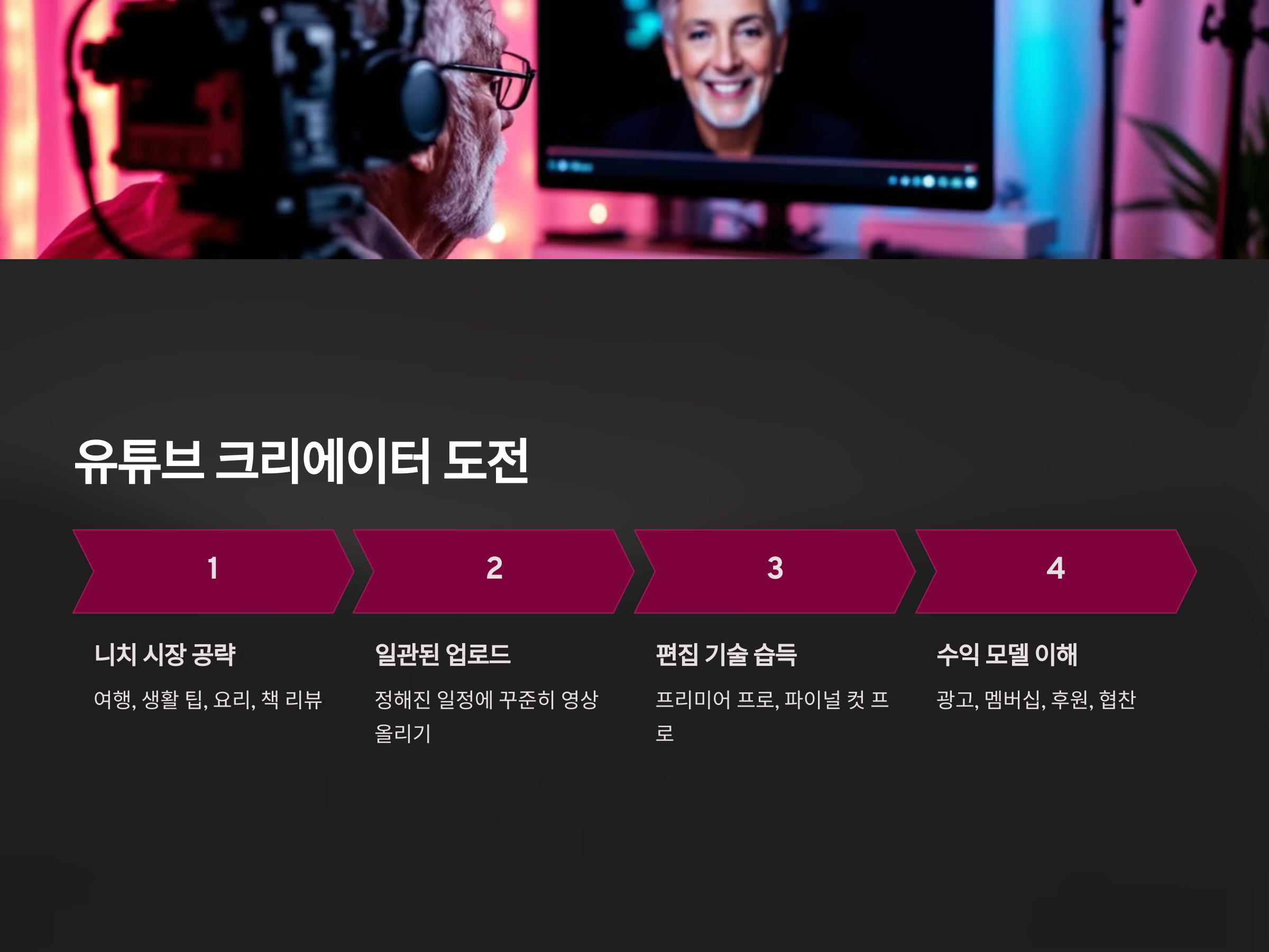 - 니치 시장 공략: 여행 Vlog, 생활 팁, 요리 레시피, 책 리뷰 등 관심 있는 분야를 선택합니다.