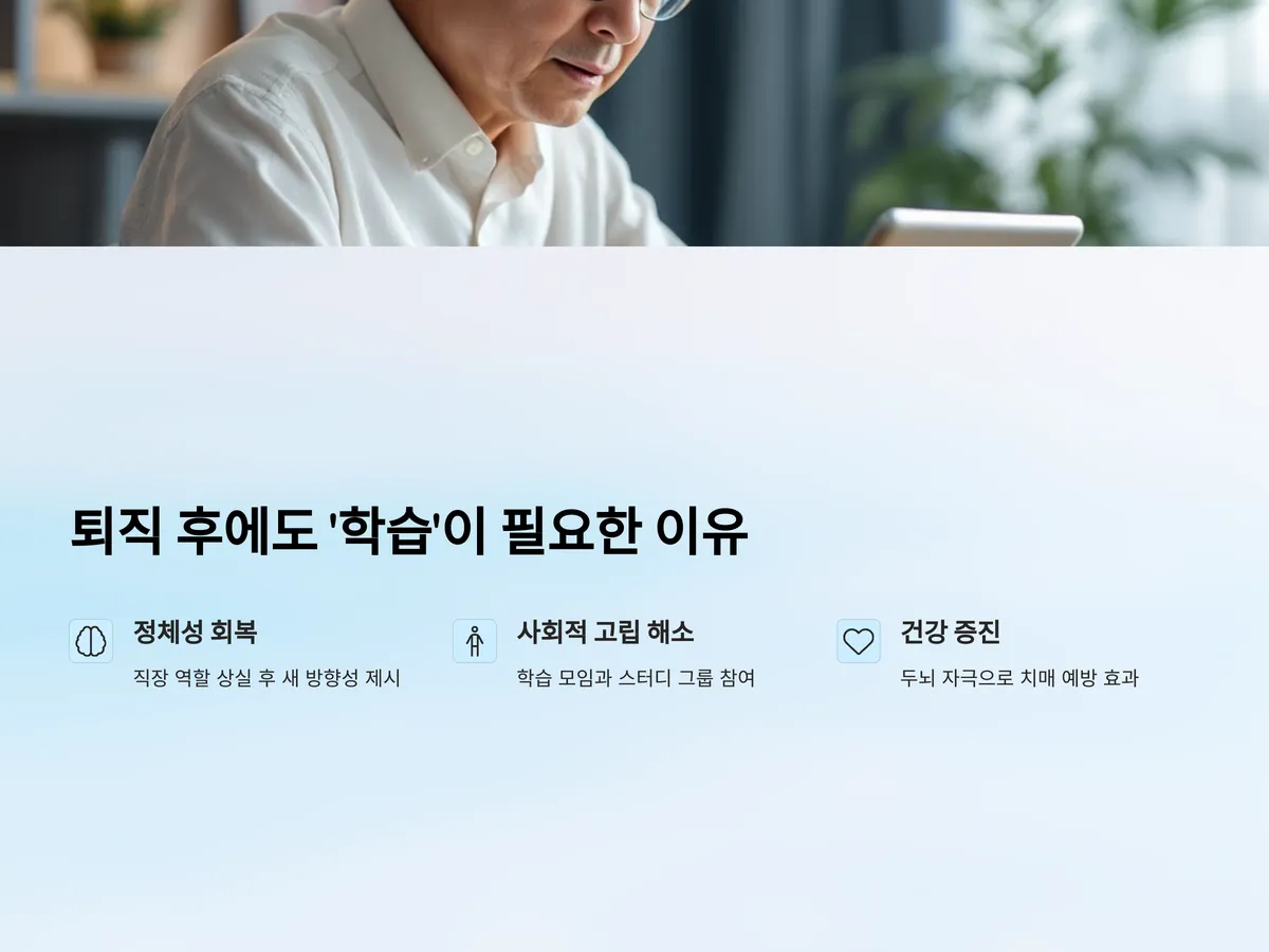 퇴직 후 학습은 단순한 지식 습득을 넘어 삶의 방향성을 재설정하는 데 결정적인 역할을 합니다. 직장에서의 역할이 사라진 후 많은 사람들이 정체성을 잃고 우울감을 경험하곤 합니다. 이때 새로운 분야에 대한 학습은 삶의 활력을 되찾는 계기가 됩니다.