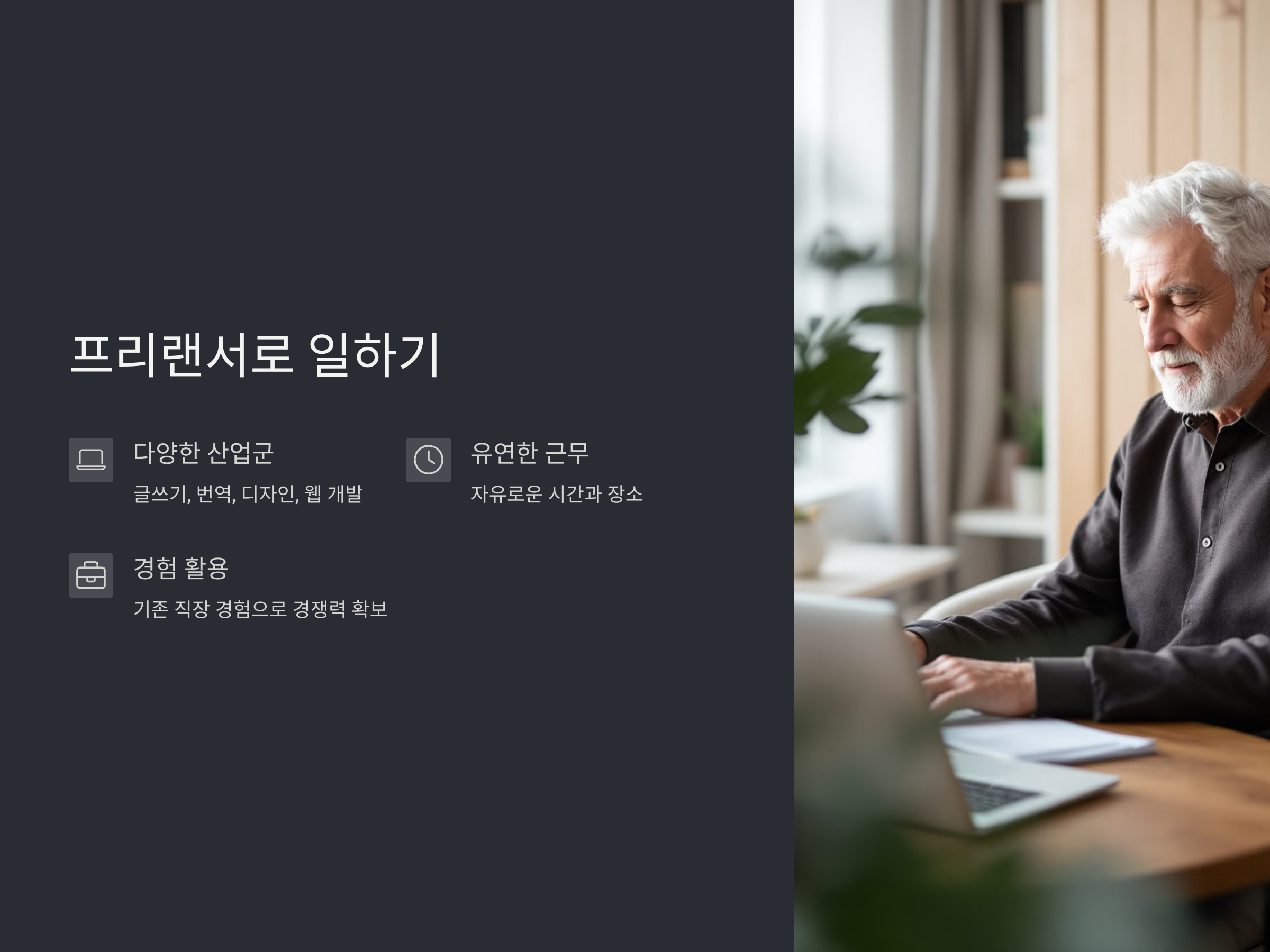 퇴직 후에 프리랜서로 일하는 장점은 유연한 근무시간과 장소의 자유입니다. 나만의 일정을 세우고, 원하는 만큼 일하며 소득을 창출할 수 있습니다. 또한, 기존의 직장생활에서 얻은 경험을 활용하여 경쟁력 있는 서비스를 제공할 수 있습니다. 이렇게 프리랜서로서 활동하는 것은 경제적 자립을 위한 첫걸음이 될 수 있습니다.