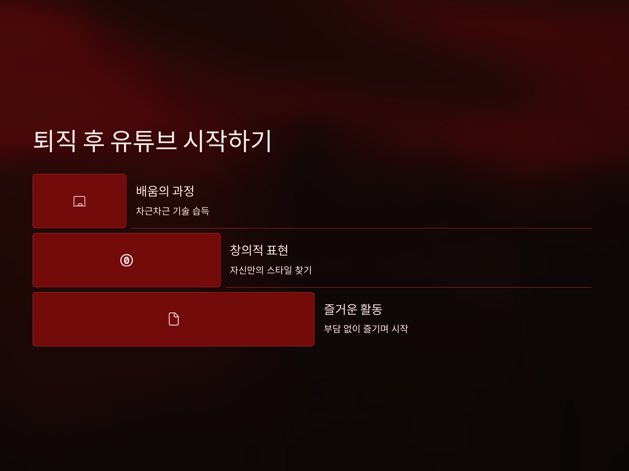 퇴직 후 여유 있는 시간을 활용해 유튜브 채널을 운영하면, 하루하루를 즐기면서도 작은 수익을 얻을 수 있는 방법이 될 수 있습니다. 그럼 유튜브 영상 제작법을 어떻게 배우고 시작할 수 있을지, 구체적으로 알아보겠습니다.