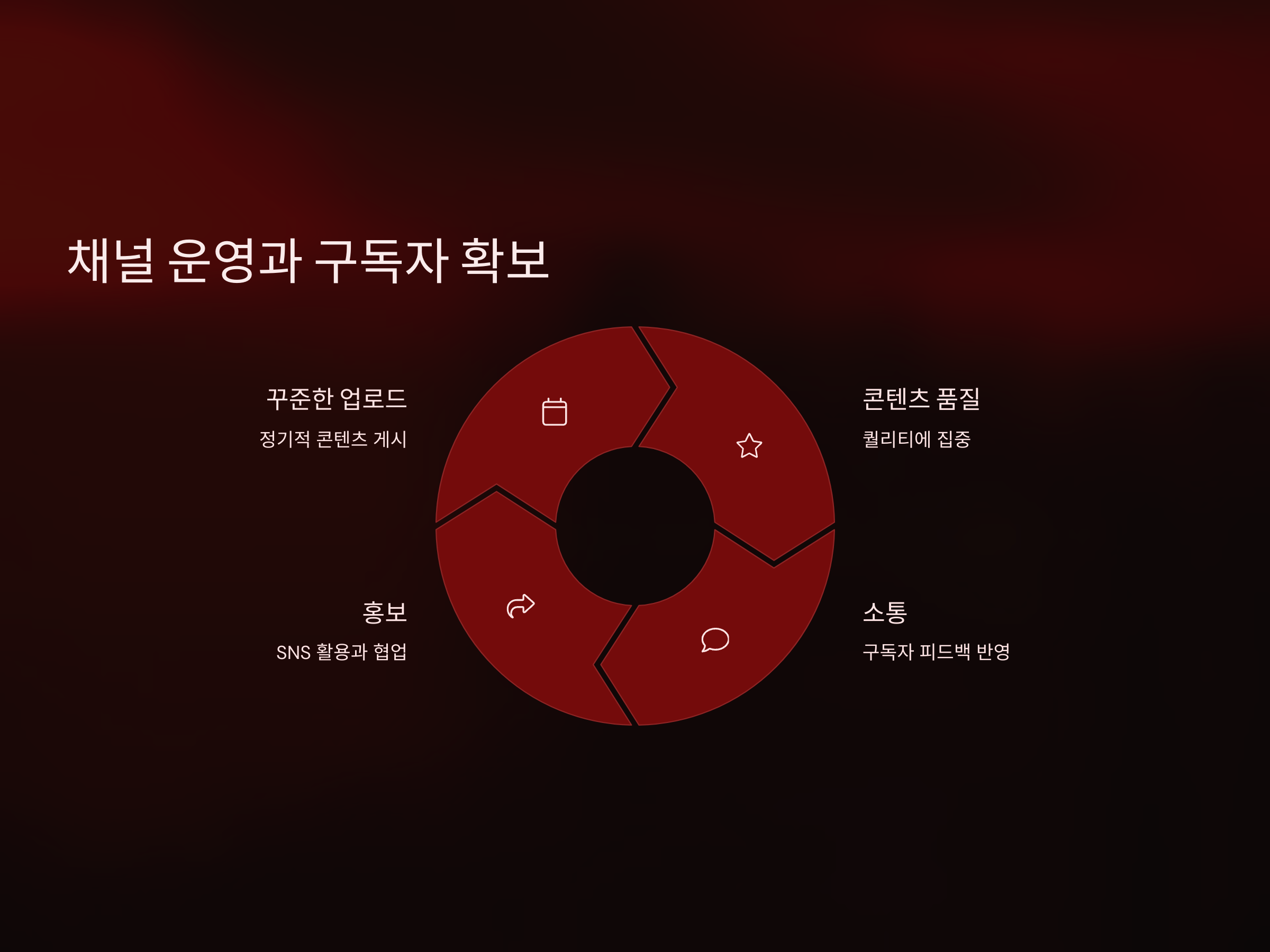 영상 제작을 잘 할 수 있게 되었다면, 이제 유튜브 채널 운영을 시작할 차례입니다. 유튜브에서 성공적인 채널을 운영하려면 꾸준함과 전략이 필요합니다. 첫 번째로 중요한 점은 꾸준히 콘텐츠를 업로드하는 것입니다. 퇴직 후 여유가 있을 때 매주 일정한 주기로 영상을 업로드하면, 구독자 수를 빠르게 늘릴 수 있습니다.
