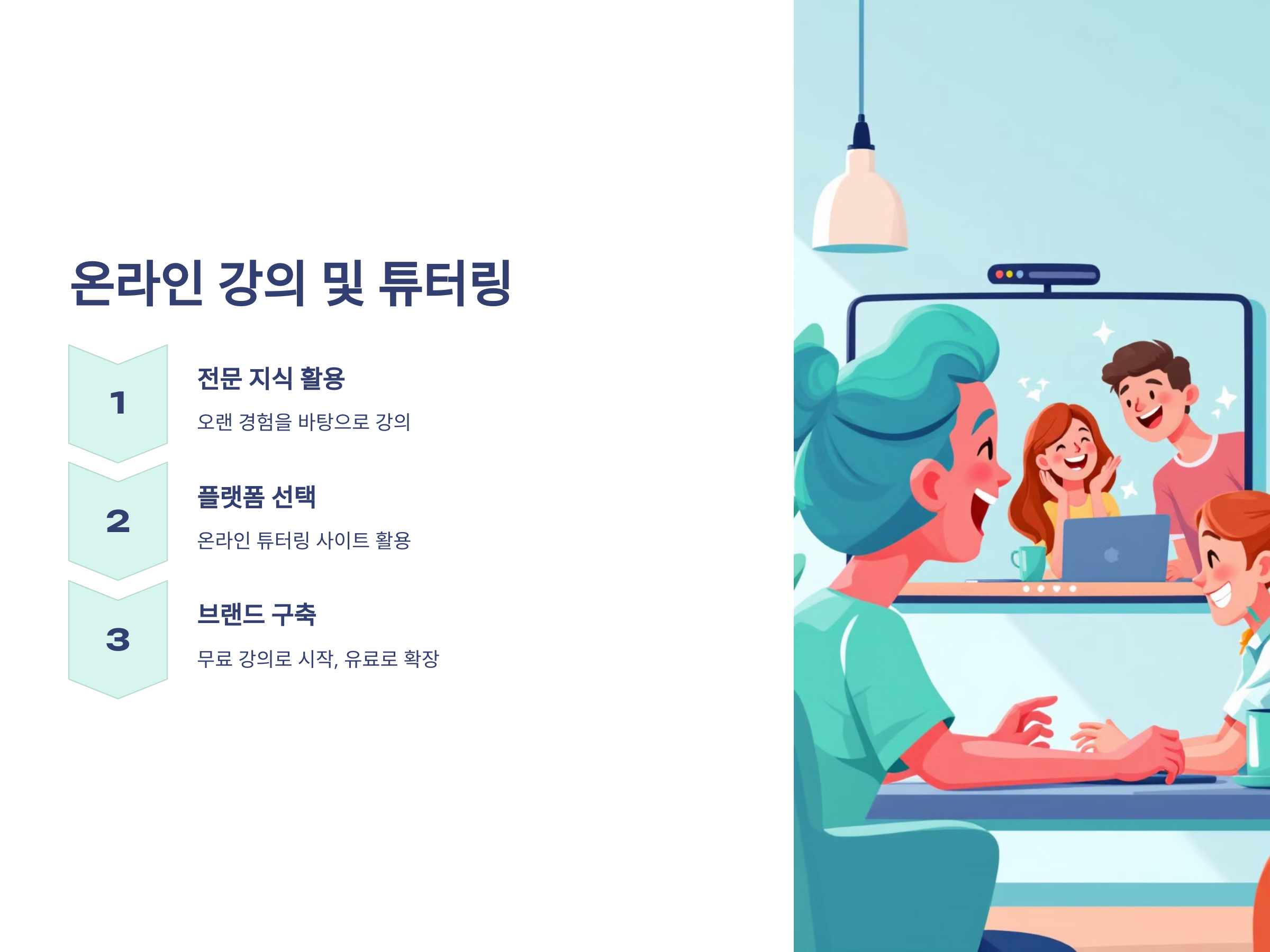 특히, 유료 튜터링 외에도 무료로 강의를 제공하여 자신의 브랜드를 만들고, 후에 유료 강의를 판매하는 전략을 쓸 수도 있습니다. 예를 들어, 유튜브를 활용해 무료 강의를 제공하면서 구독자를 모은 뒤, 그들에게 유료 강의를 판매하는 방식입니다.