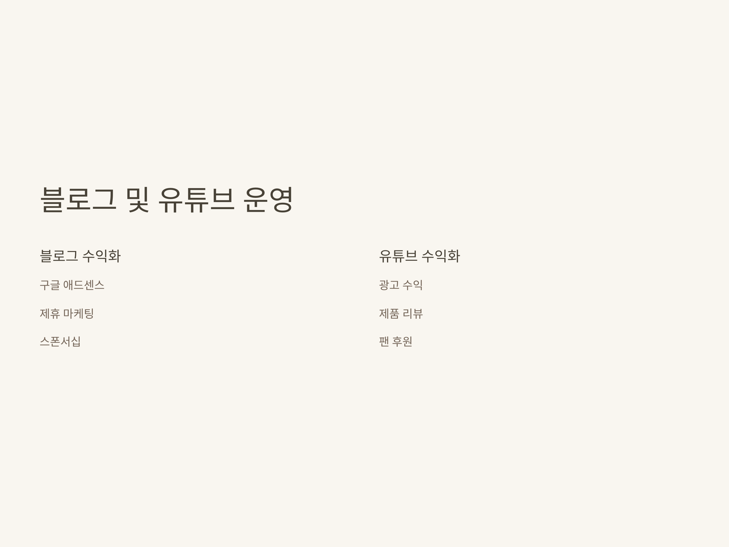 - 다양한 광고 및 제휴 프로그램을 통한 수익화 가능