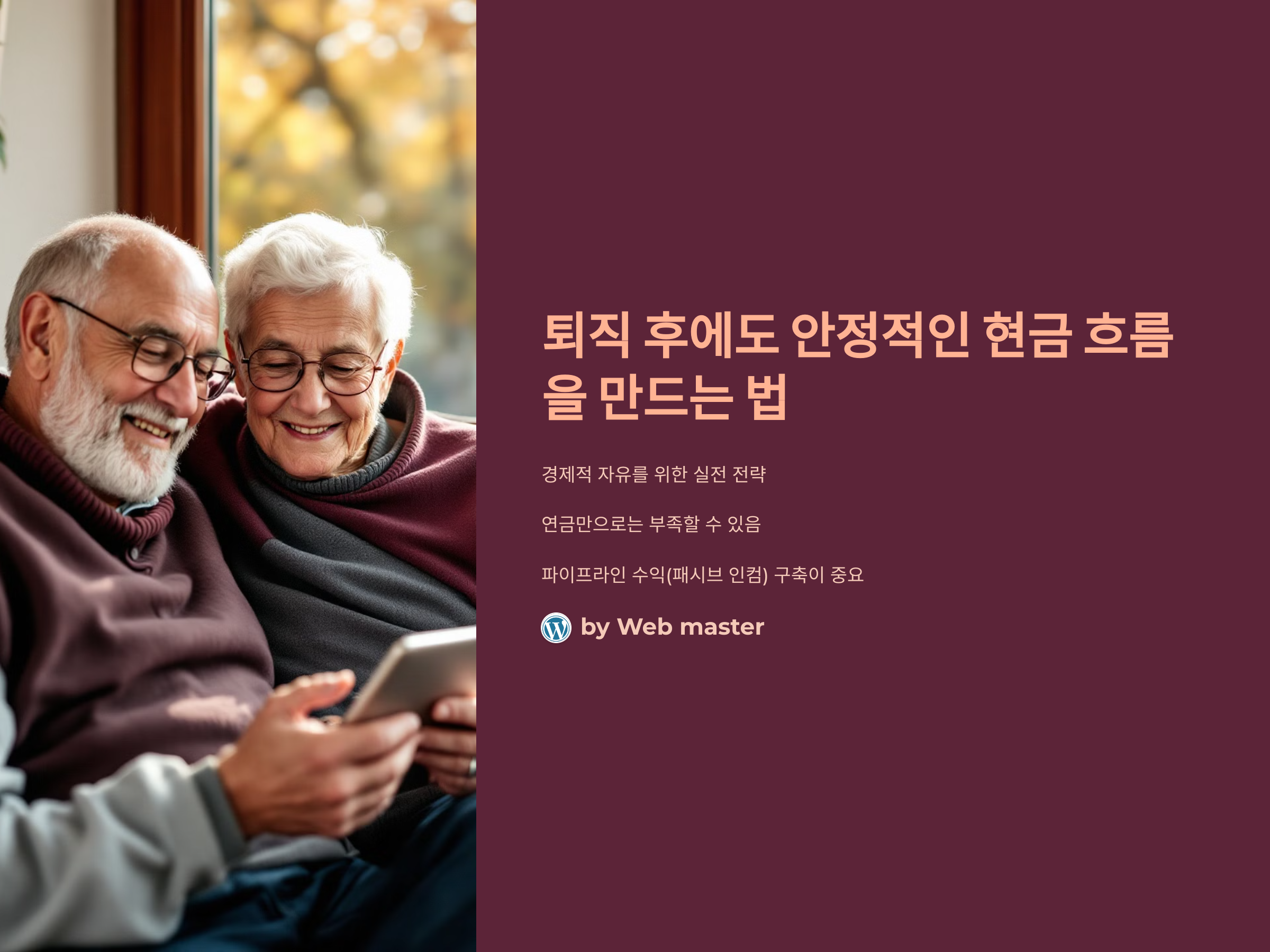 퇴직 후에도 안정적인 수입이 지속되는 것은 많은 사람들이 꿈꾸는 목표입니다. 하지만 연금만으로는 부족할 수 있고, 예기치 않은 지출이 발생할 가능성도 큽니다. 최근에는 고령화 사회로 접어들면서 퇴직 후에도 경제적 활동을 지속하려는 사람들이 늘어나고 있으며, 파이프라인 수익(패시브 인컴)을 구축하는 것이 더욱 중요해지고 있습니다. 이번 글에서는 퇴직 후에도 꾸준한 현금 흐름을 만들 수 있는 현실적이고 실행 가능한 방법을 소개합니다.