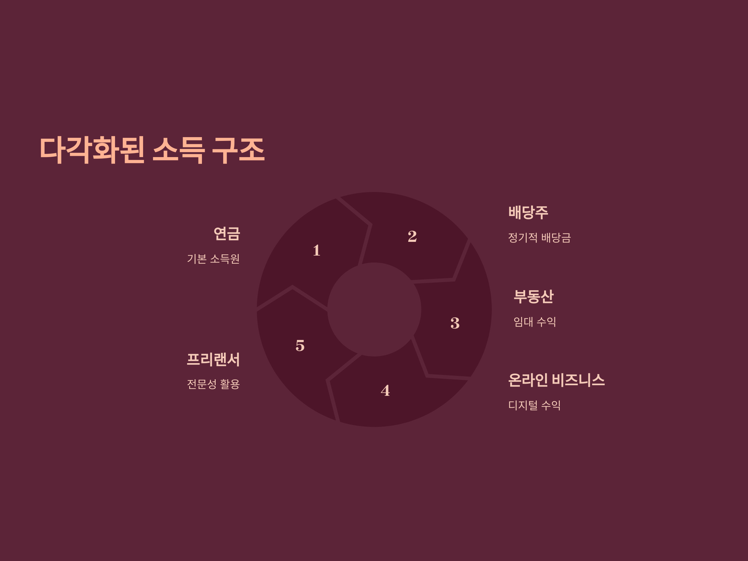 퇴직 후 안정적인 현금 흐름을 유지하려면 단일 수입원에 의존하지 않고, 다양한 소득원을 조합하는 것이 중요합니다. 연금, 배당주, 부동산, 온라인 비즈니스, 프리랜서 활동 등을 적절히 활용하면 보다 안정적인 재정을 구축할 수 있습니다.