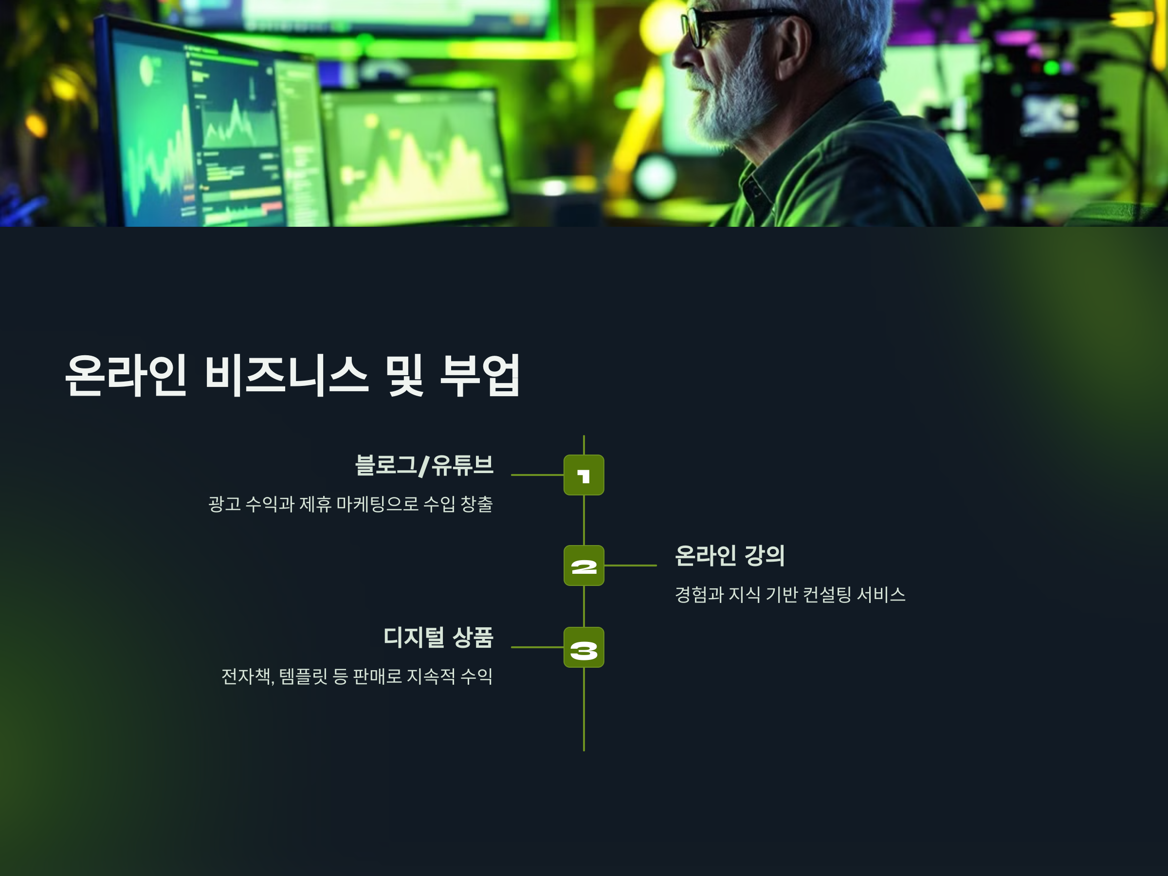 퇴직 후에도 인터넷을 활용하여 소득을 창출할 수 있는 다양한 방법이 있습니다.