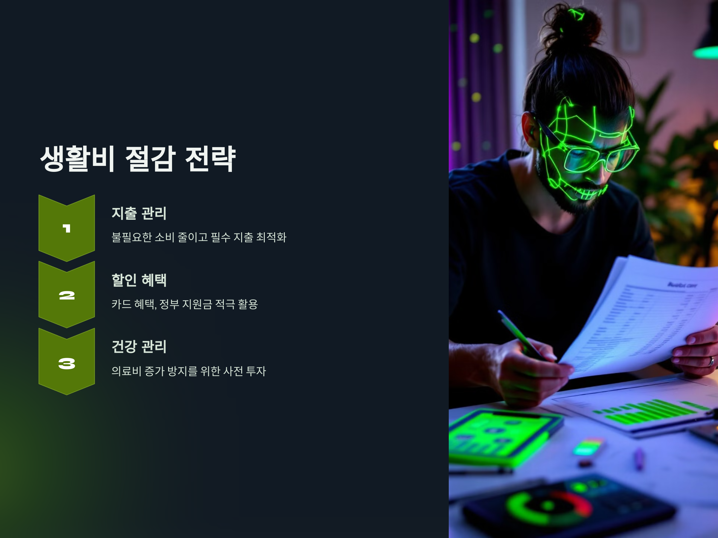 카드 혜택, 정부 지원금, 할인 프로그램 등을 적극 활용하면 생활비를 줄일 수 있습니다.