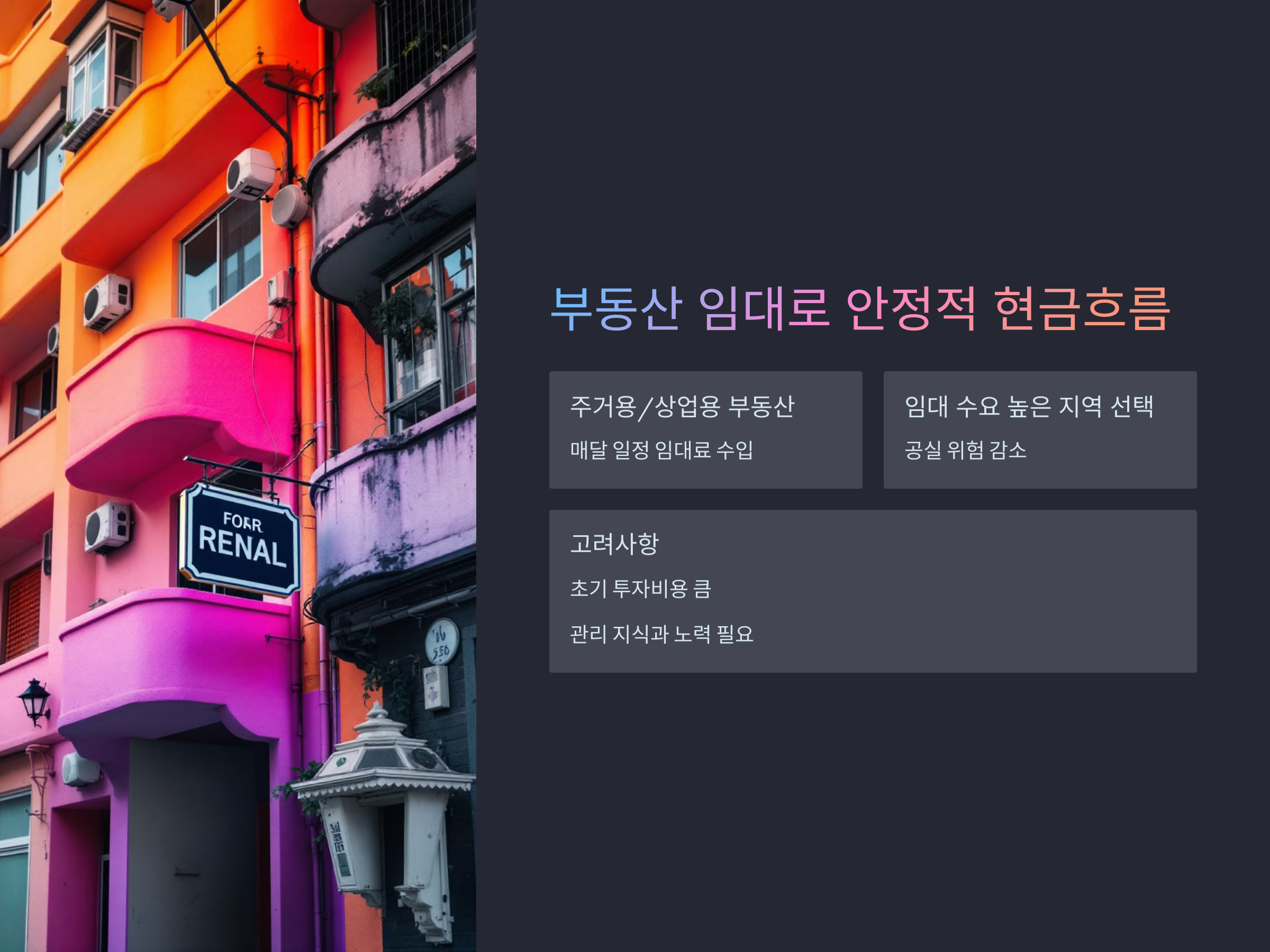 부동산 임대를 통한 꾸준한 수입 창출