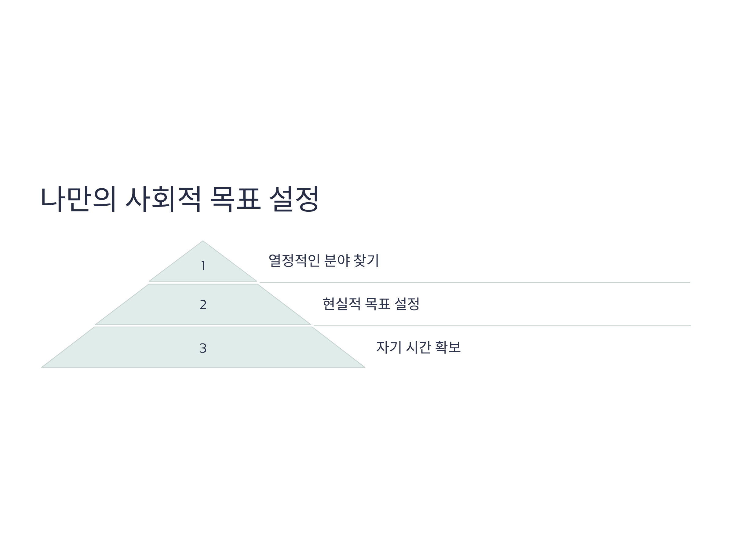 처음에는 너무 큰 목표를 설정하기보다는 작은 목표를 설정해보세요. 예를 들어, 자원봉사를 한 달에 한 번 해본다든지, 멘토링을 시작한다든지, 서서히 활동 범위를 넓혀가는 것이 좋습니다.
