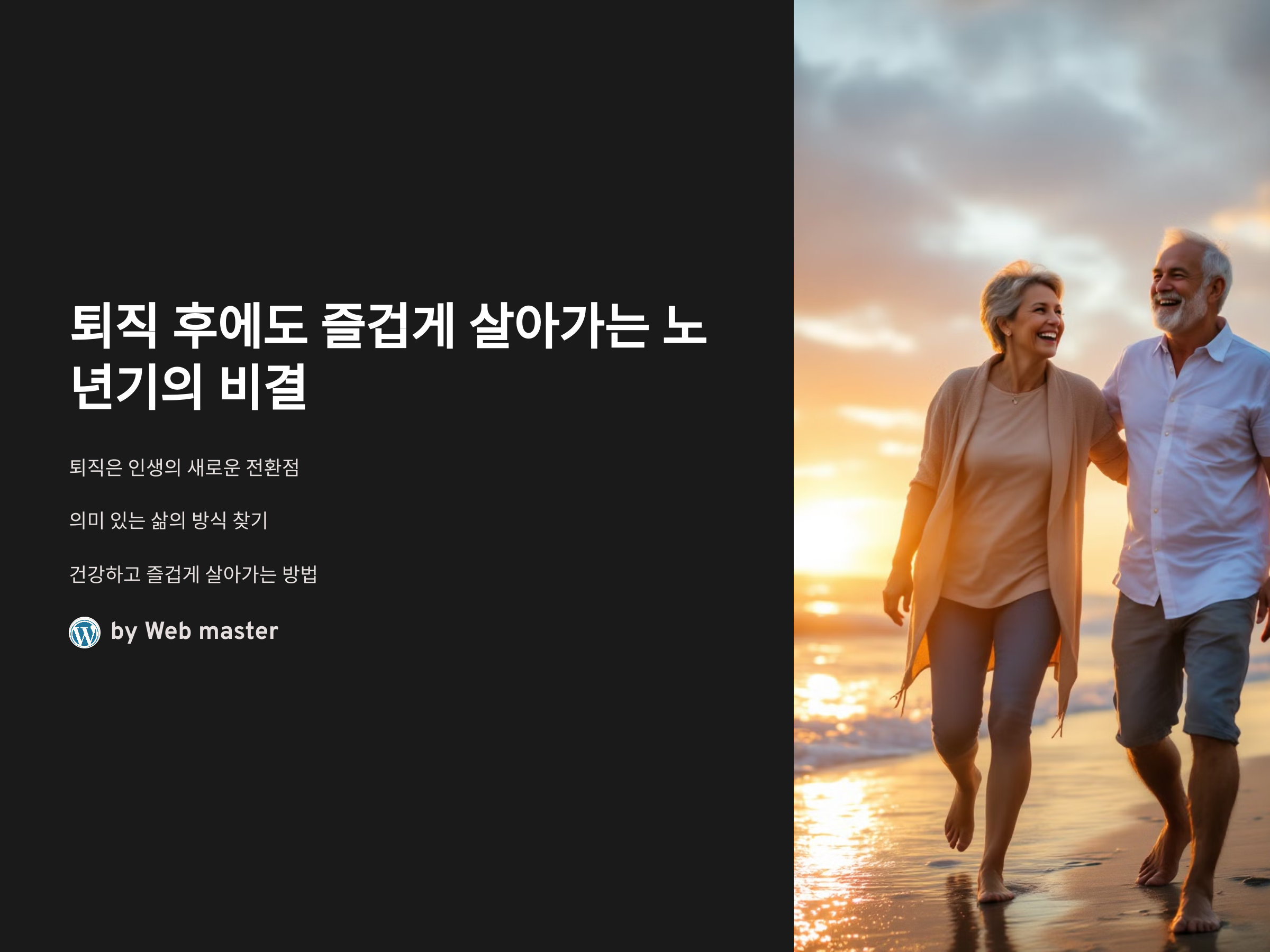퇴직 후에도 즐겁고 의미 있는 삶을 살아가려면, 새로운 목표와 취미를 찾아 삶의 질을 높이는 것이 중요합니다. 사회적 관계를 유지하고, 건강을 관리하며, 경제적인 계획을 세우는 것이 퇴직 후에도 행복한 노년기를 만드는 핵심입니다. 긍정적인 마인드를 갖고, 새로운 삶의 기회를 찾는다면, 퇴직 후에도 풍요롭고 즐거운 삶을 살아갈 수 있습니다. 여러분도 이제 퇴직 후 즐겁고 활기찬 삶을 시작해보세요!