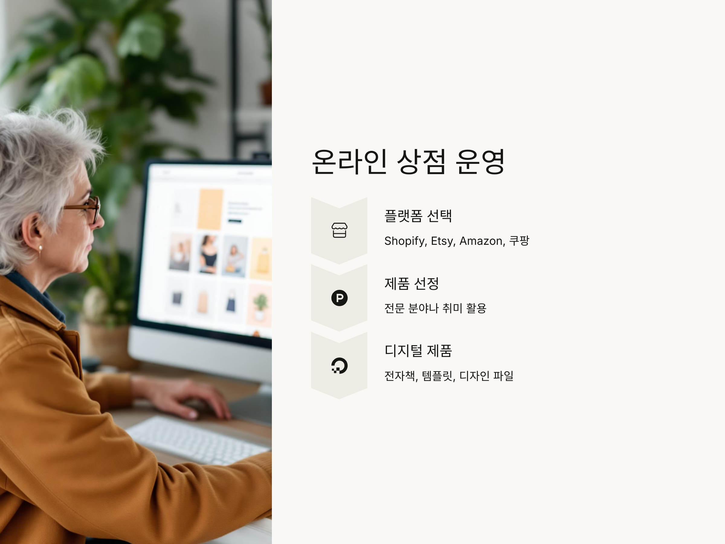 퇴직 후 안정적인 수익을 창출하기 위해 온라인 상점을 운영하는 것도 한 방법입니다. 최근에는 전자상거래 플랫폼들이 많이 발전하여 누구나 손쉽게 온라인 쇼핑몰을 개설하고 운영할 수 있는 시대가 되었습니다. Shopify, Etsy, Amazon, 쿠팡 등의 플랫폼을 이용하면, 자신의 제품을 판매하거나 제휴 마케팅을 통해 수익을 얻을 수 있습니다.