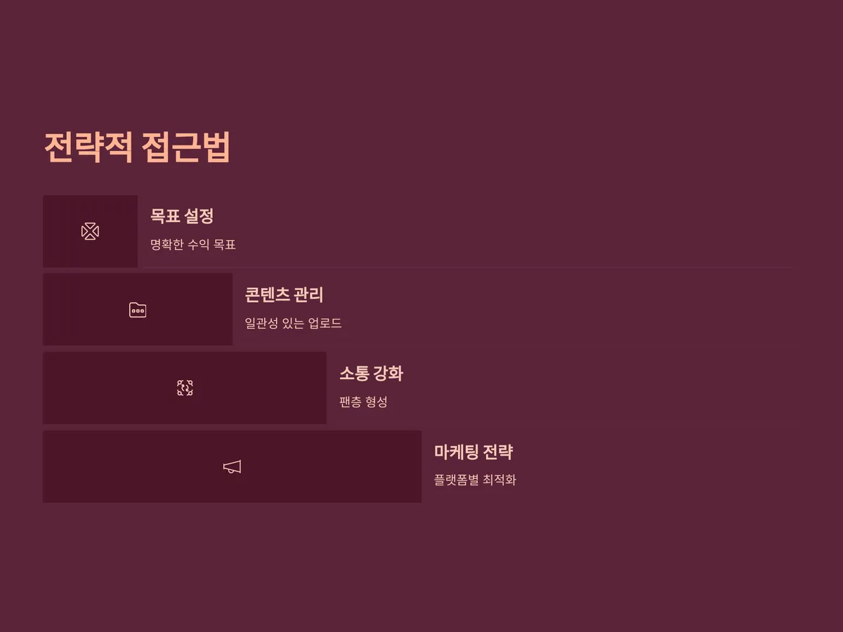 - 브랜드 아이덴티티: 자신만의 정체성을 반영한 닉네임, 로고, 콘셉트 등을 갖추는 것이 좋습니다.