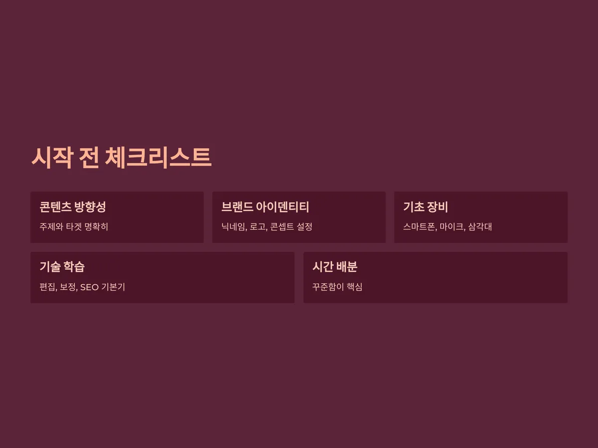 - 기초 장비 확보: 스마트폰, 마이크, 삼각대 등 최소한의 장비는 필요합니다.