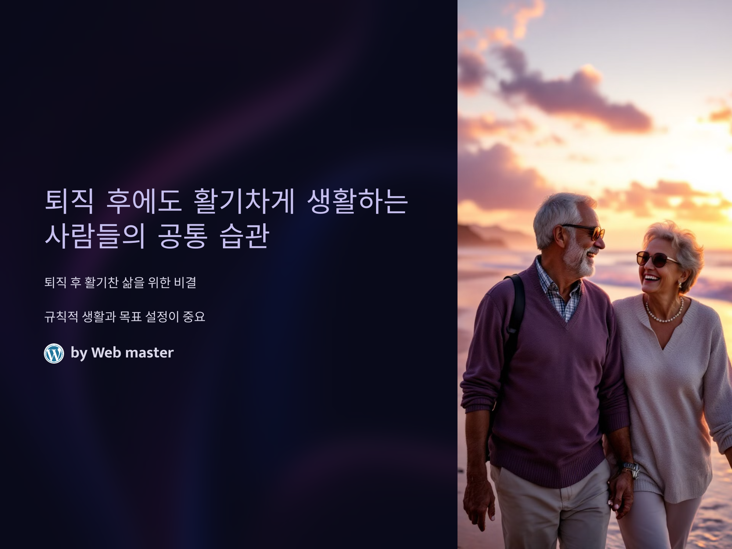 퇴직 후의 생활은 더 이상 규칙적인 출퇴근 시간에 얽매이지 않기 때문에 유연한 일정을 유지할 수 있습니다. 이 점을 활용하여 더욱 풍요롭고, 건강하게 시간을 보내는 것이 중요한데, 실제로 활기찬 퇴직 후 생활을 유지하는 사람들은 몇 가지 공통된 습관을 가지고 있습니다. 그럼 그들의 습관을 구체적으로 살펴볼까요?
