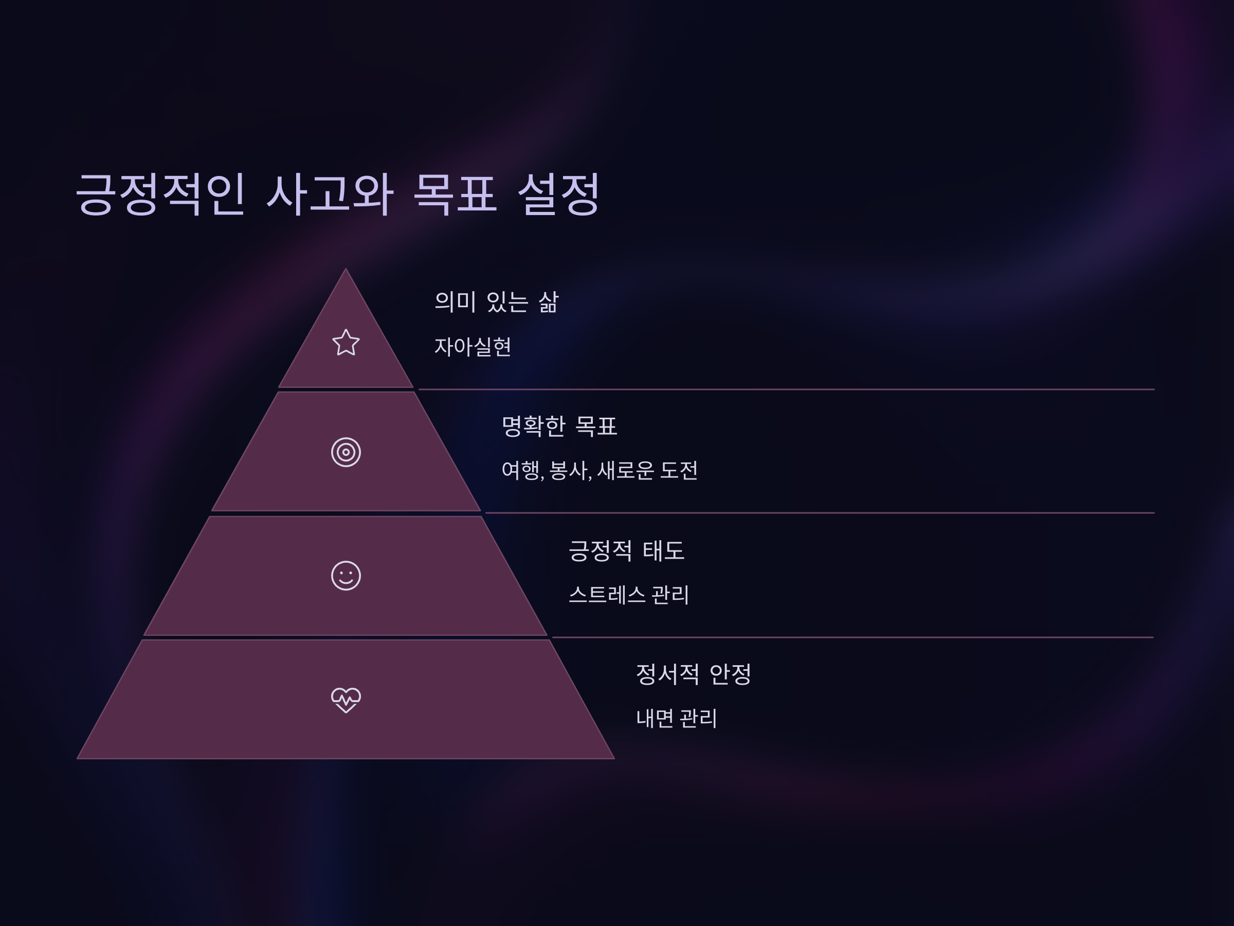 퇴직 후에도 활기차게 생활하는 사람들은 대부분 긍정적인 사고방식을 가지고 있습니다. 삶에 대한 긍정적인 태도는 스트레스 관리와 정서적 안정에도 큰 영향을 미칩니다. 불안이나 우울감을 느끼지 않으려면 자신의 내면을 잘 관리하는 것이 필수입니다.