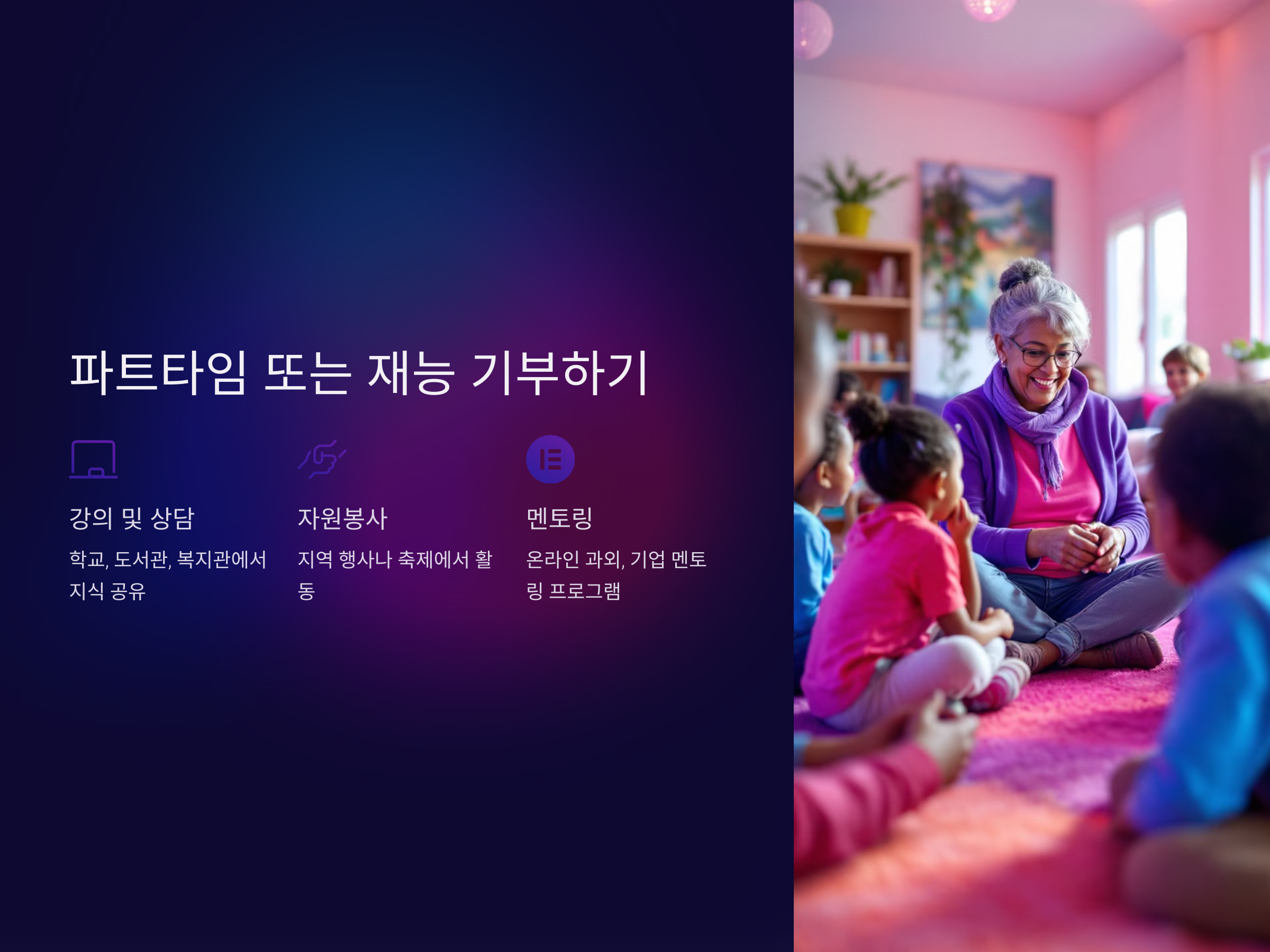 추천할 만한 파트타임 및 재능 기부 활동은 다음과 같습니다.