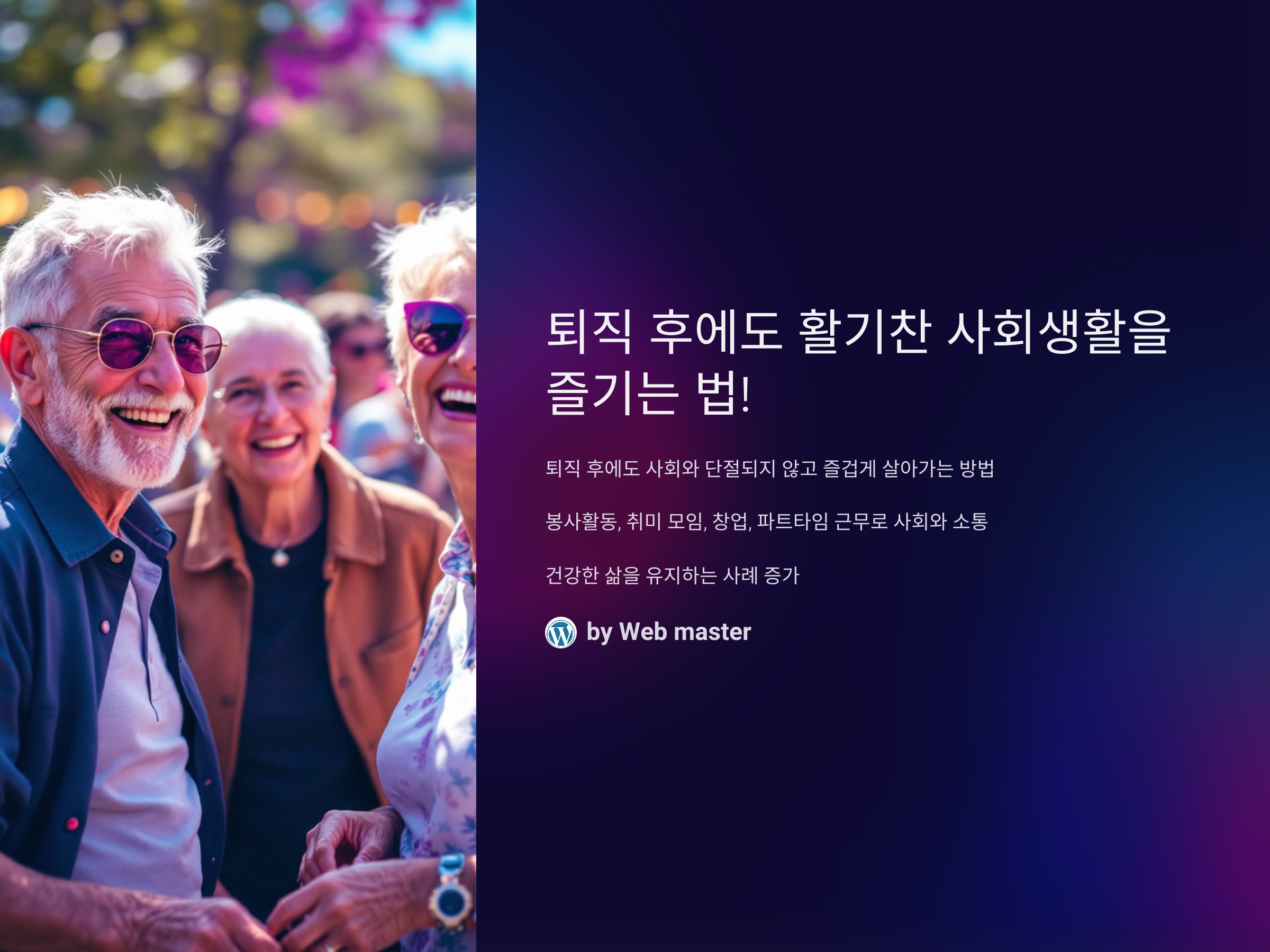 퇴직 후에도 사회와 단절되지 않고 즐겁게 살아가는 방법은 다양합니다. 최근 많은 시니어들이 적극적으로 사회활동을 이어가며 새로운 인생 2막을 설계하고 있습니다. 특히, 봉사활동, 취미 모임, 창업, 파트타임 근무 등 다양한 활동을 통해 사회와 소통하며 건강한 삶을 유지하는 사례가 늘어나고 있습니다. 그렇다면 어떻게 해야 퇴직 후에도 활기찬 사회생활을 즐길 수 있을까요? 이번 글에서는 실천 가능한 방법들을 소개하며, 지속적으로 행복한 삶을 유지할 수 있는 팁을 제공합니다.