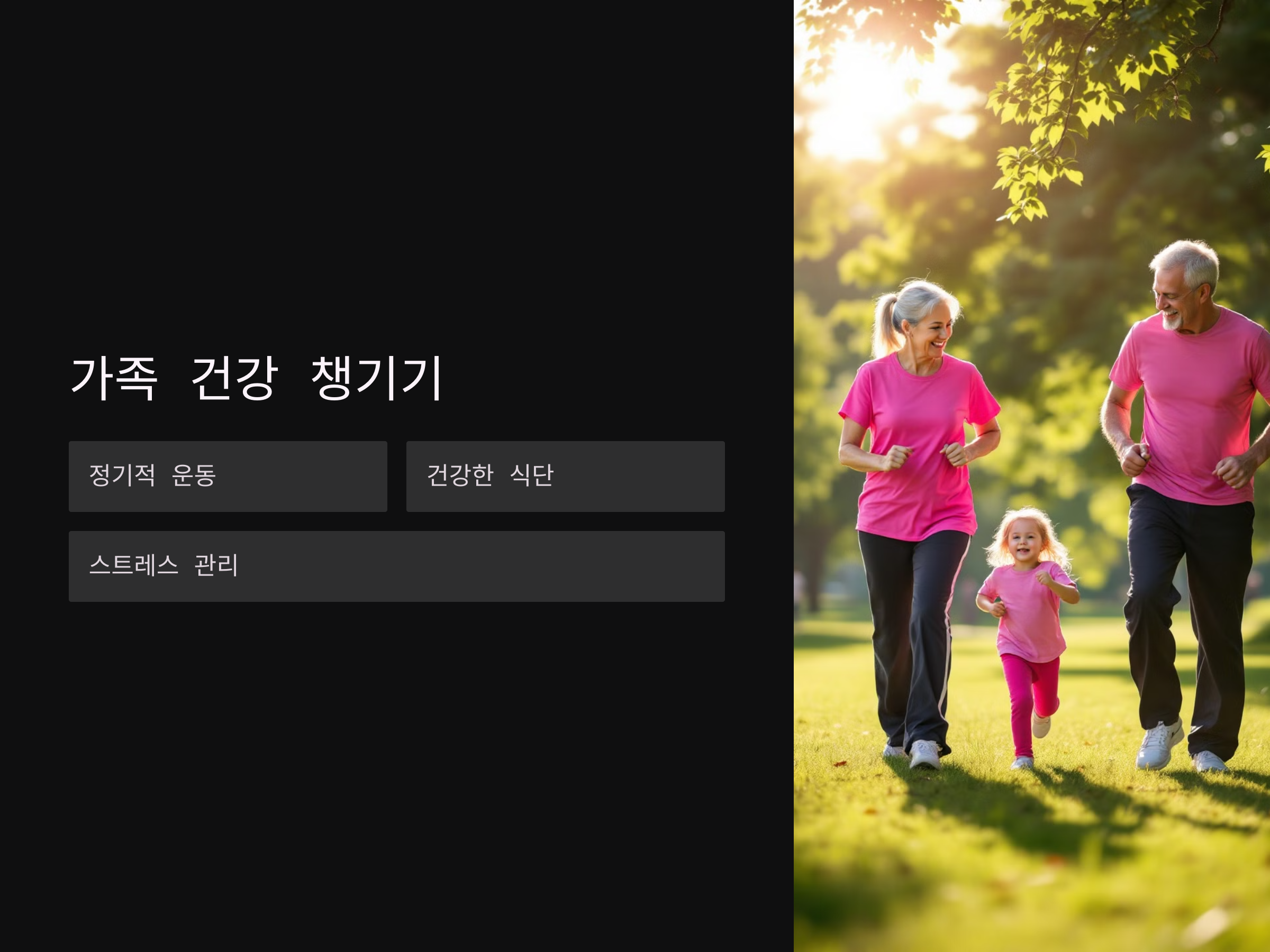 가족과 함께 정기적으로 운동을 하거나, 건강한 식사를 함께 준비하는 등의 활동을 통해 가족 구성원 모두의 건강을 챙길 수 있습니다. 이런 작은 변화가 가족의 행복에 큰 영향을 미칠 것입니다.
