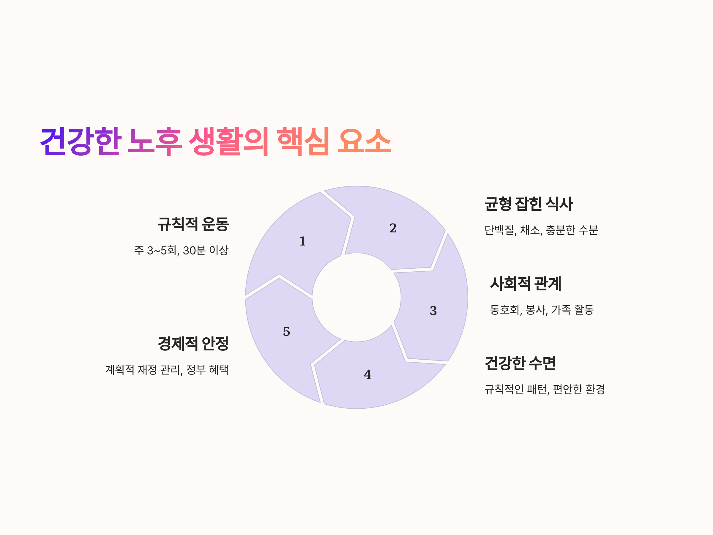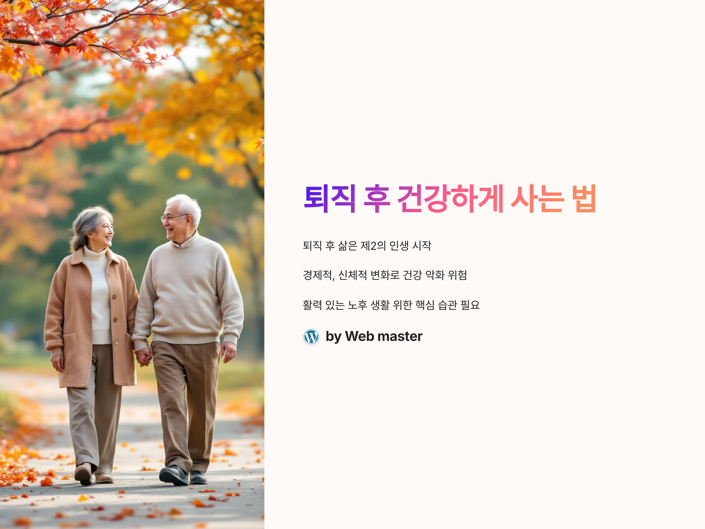 퇴직 후 삶은 제2의 인생이 시작되는 시기입니다. 하지만 많은 사람이 경제적, 신체적 변화에 적응하지 못하고 건강을 해치곤 합니다. 특히 활동량이 줄어들고 사회적 관계가 줄어들면서 신체적·정신적 건강이 악화될 위험이 큽니다. 그렇다면 노후에도 활력 있는 삶을 유지하려면 어떤 생활 습관이 필요할까요? 최신 연구에 따르면 규칙적인 운동, 균형 잡힌 식사, 적극적인 사회 활동이 장수와 건강을 유지하는 핵심 요소로 밝혀졌습니다. 이번 글에서는 퇴직 후에도 건강하게 생활하는 법과 노후 생활 습관을 개선하는 방법을 구체적으로 알아보겠습니다.