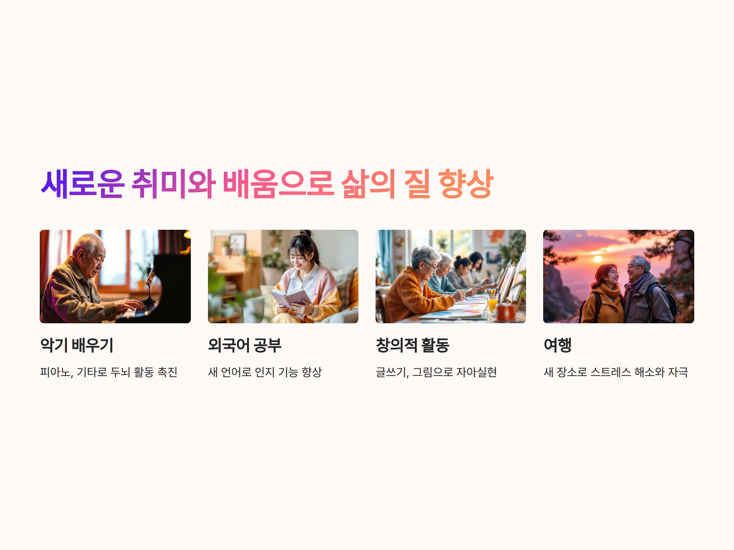 새로운 배움과 도전은 노후 생활의 질을 높이는 중요한 요소입니다.