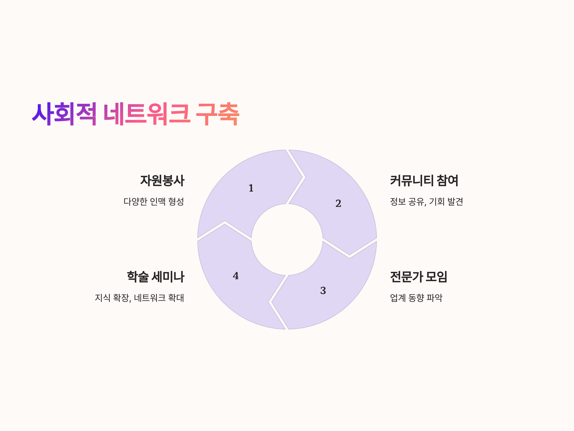 자신의 분야나 취미에 맞는 전문 네트워크를 만들어가는 것도 퇴직 후 경제적 독립을 위한 중요한 전략입니다. 예를 들어, 전문가 모임이나 학술 세미나에 참여하여 더 많은 사람들과 관계를 쌓고, 경제적 기회를 확보할 수 있습니다.