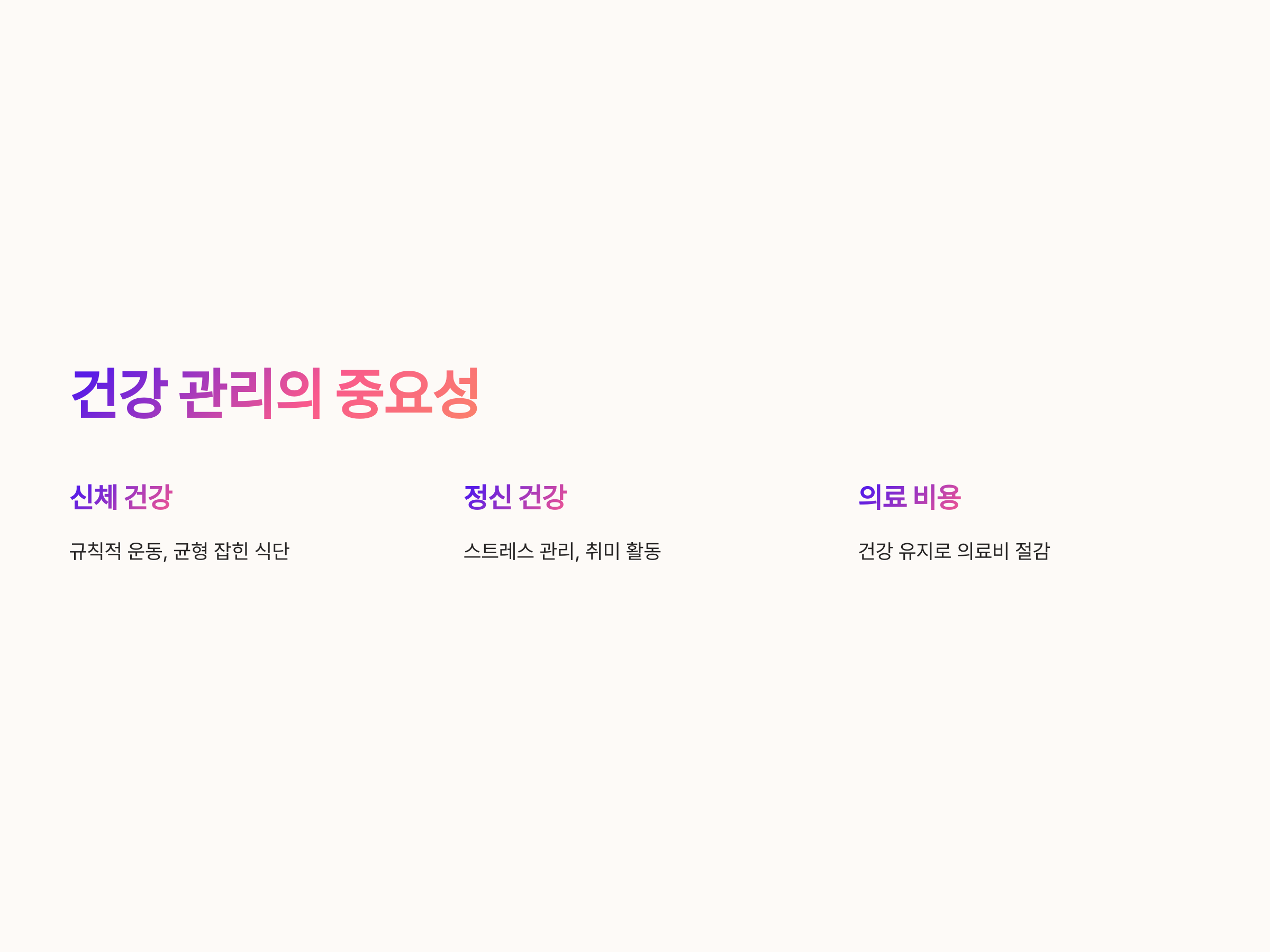 경제적 독립을 이루는 것도 중요하지만, 퇴직 후 건강을 관리하는 것도 매우 중요합니다. 건강이 좋지 않으면 경제적 독립도 의미가 없기 때문에, 퇴직 후에는 건강을 유지하고 삶의 질을 높이는 방법에 대해서도 고민해야 합니다.