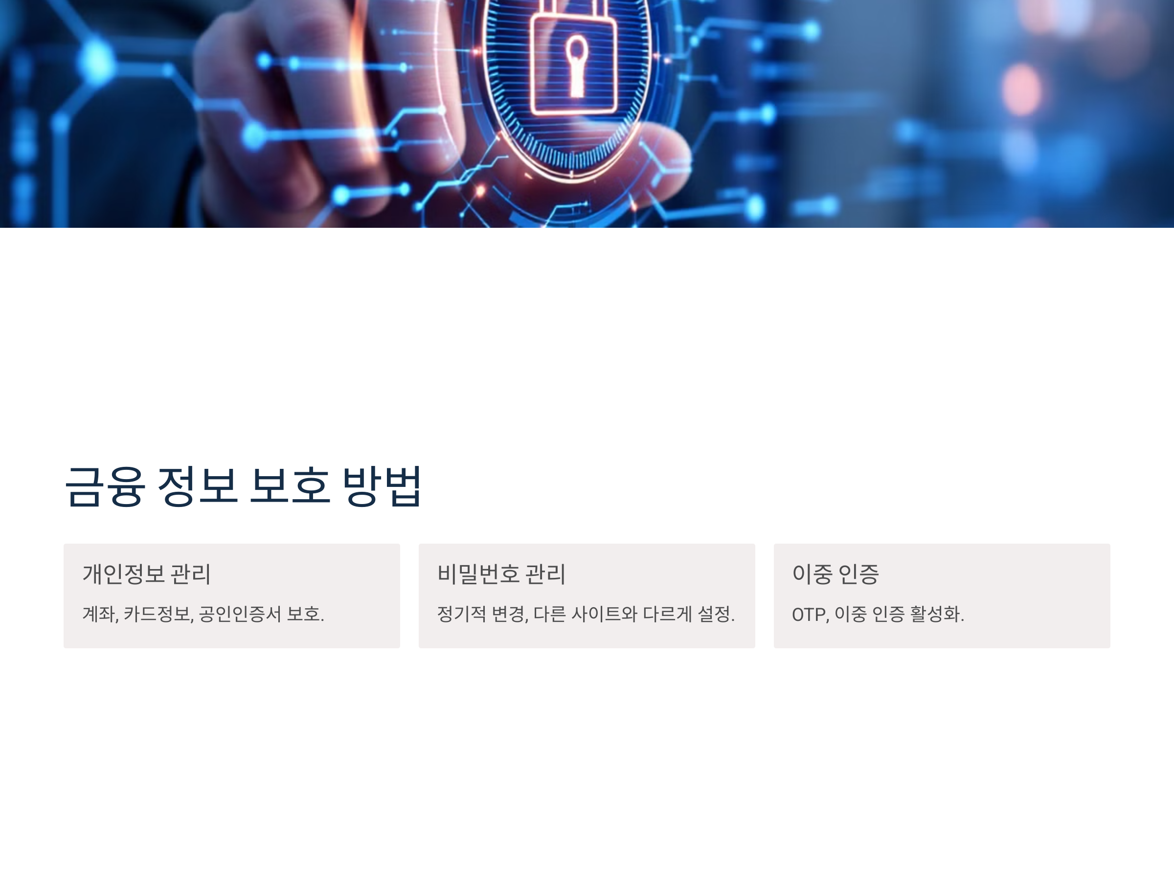 - 은행 계좌, 카드 정보, 공인인증서 등의 금융 정보를 가족 외에는 공유하지 않습니다.