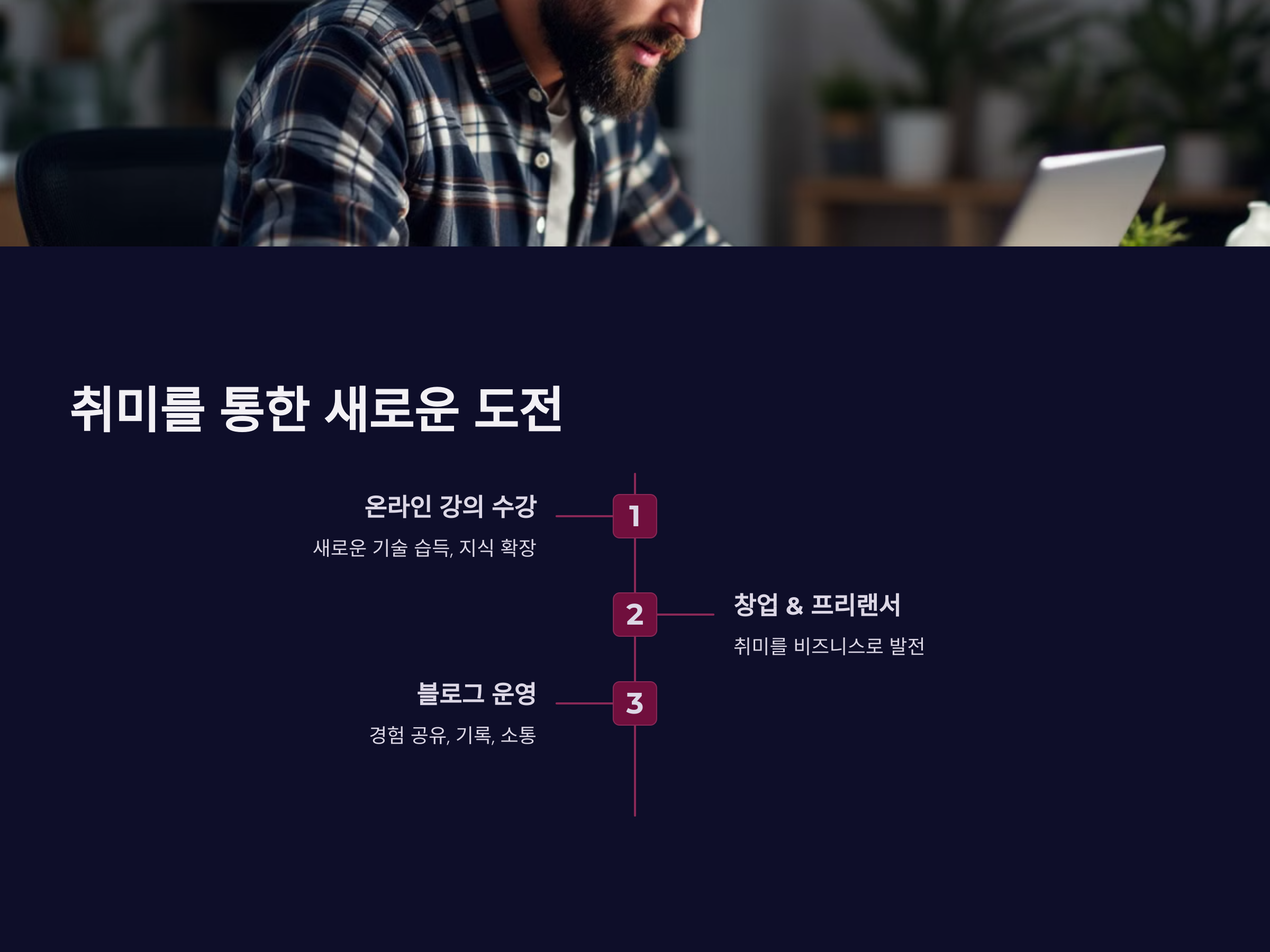 - 창업 & 프리랜서 활동: 취미를 비즈니스로 확장할 수도 있습니다.