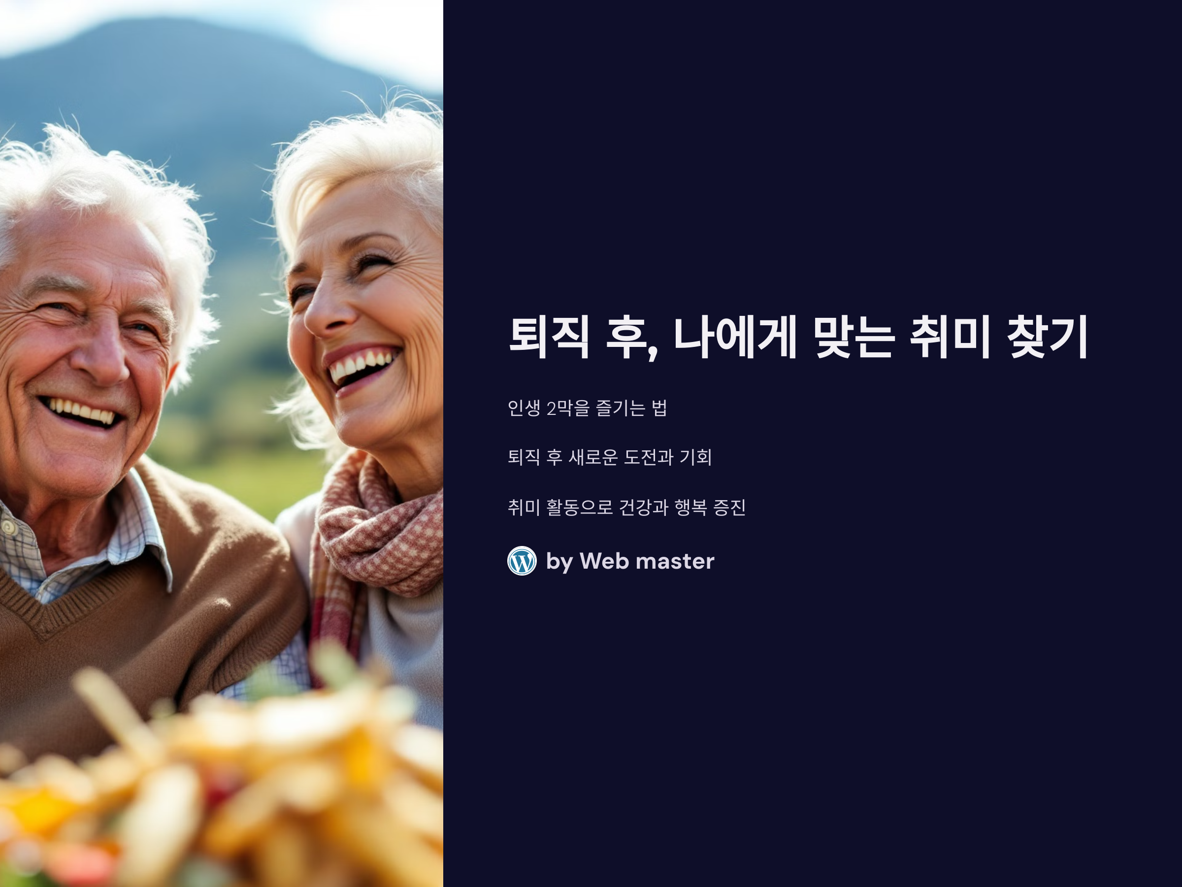 퇴직 후에도 활기찬 삶을 위해 나에게 맞는 취미를 찾아보세요. 즐겁고 의미 있는 시간을 보내며 새로운 인생 2막을 멋지게 설계할 수 있을 것입니
