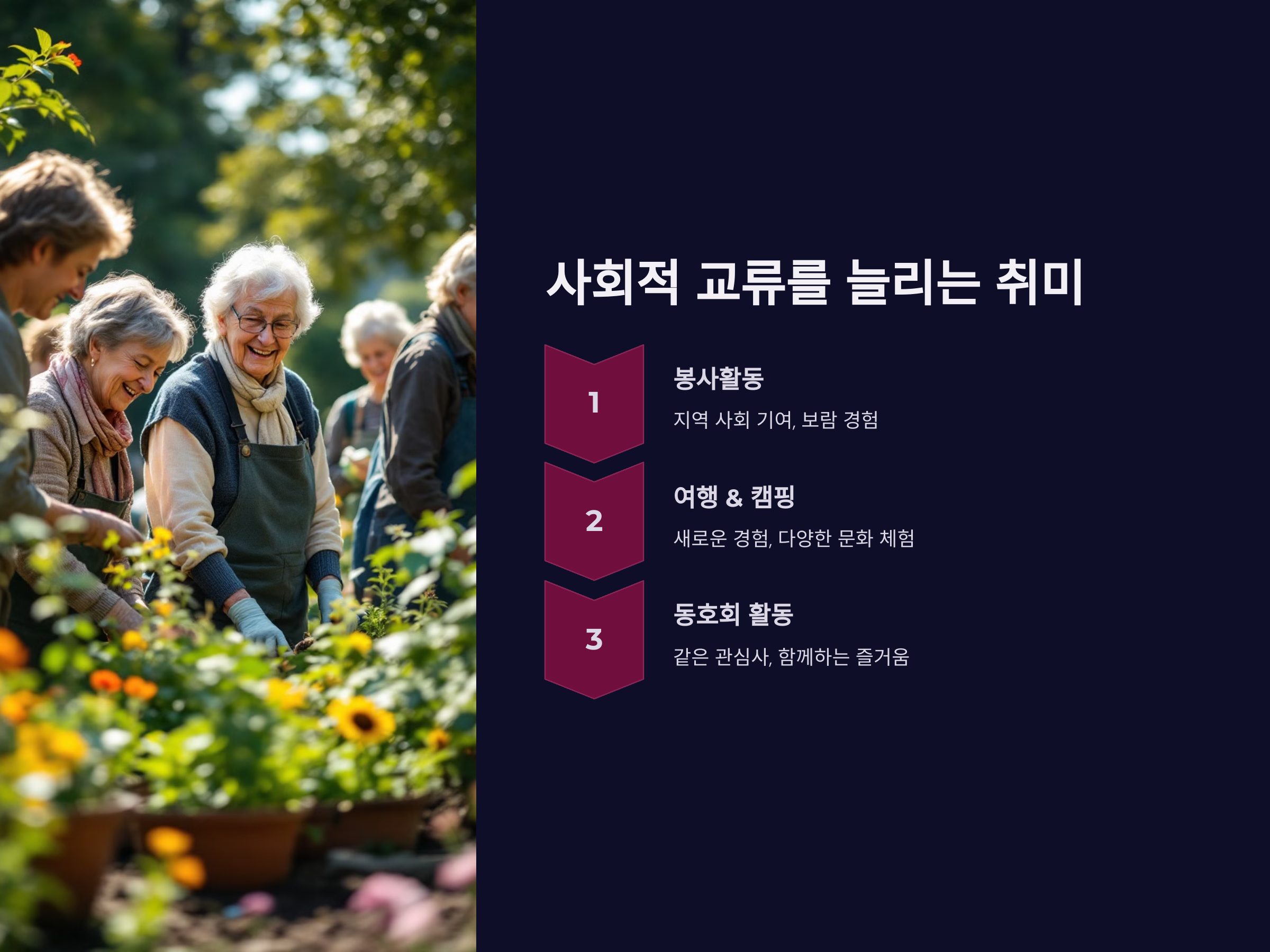 다양한 사람들과 교류하며 의미 있는 시간을 보내고 싶다면 다음과 같은 취미를 고려할 수 있습니다.