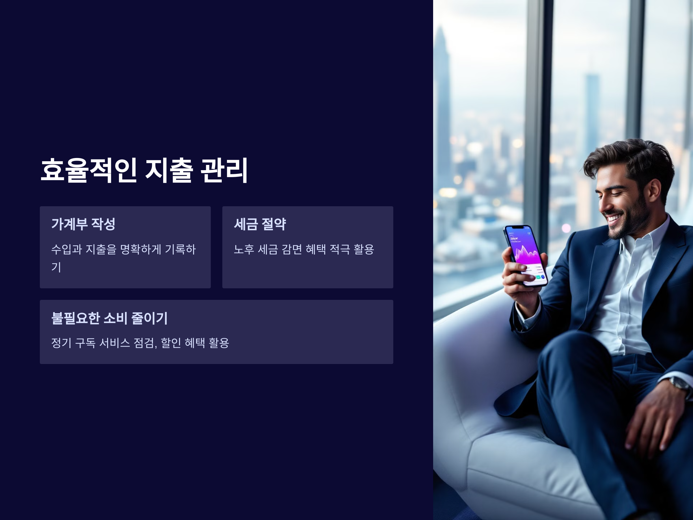 아무리 수입이 많아도 지출이 많다면 의미가 없습니다. 퇴직 후에는 효율적인 지출 관리가 필수입니다.