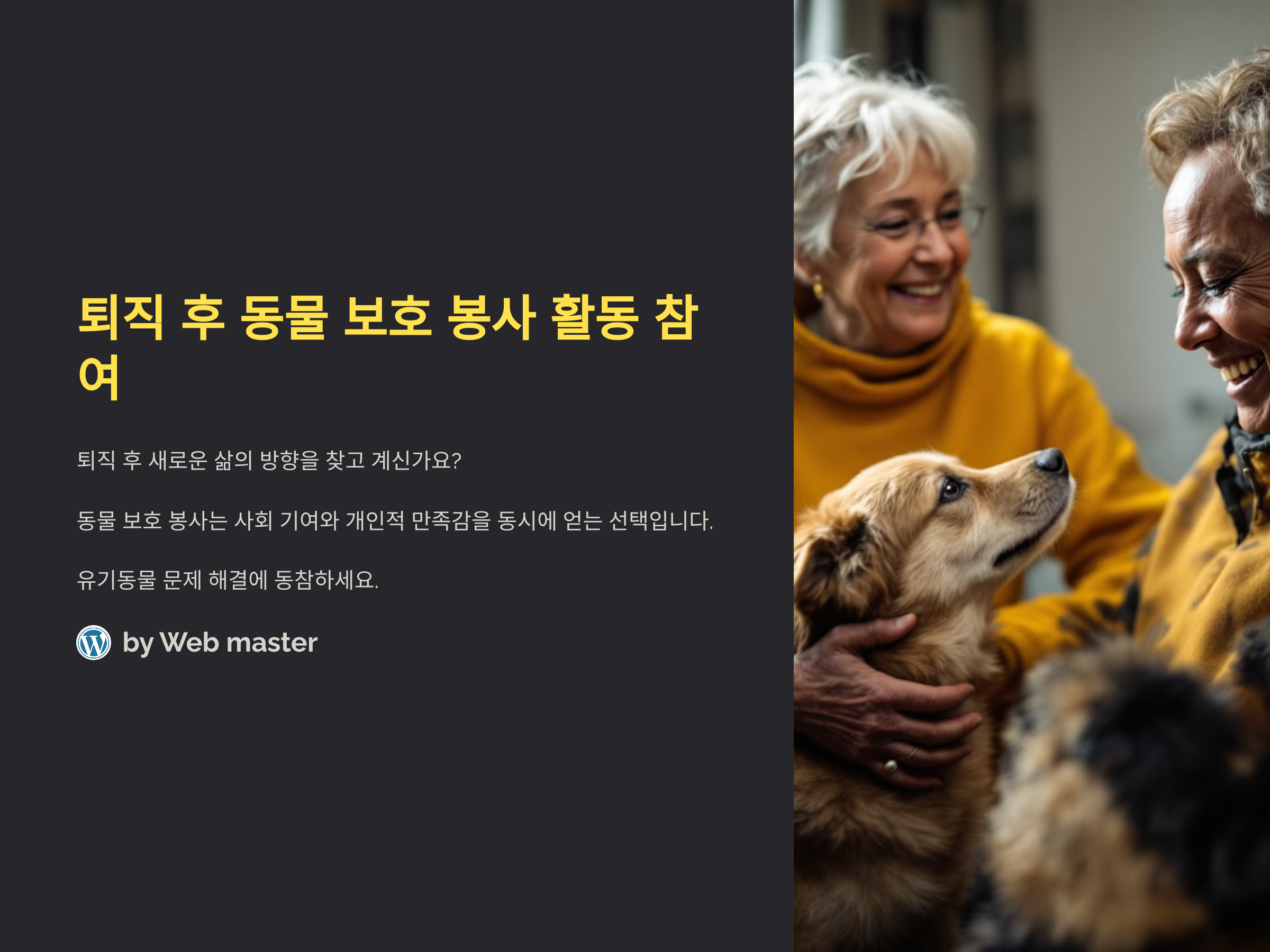 퇴직 후 새로운 삶의 방향을 찾고 계신가요? 동물 보호 봉사 활동은 사회에 기여하면서 개인적인 만족감을 얻을 수 있는 훌륭한 선택입니다. 최근에는 유기동물 문제가 사회적 이슈로 떠오르며, 많은 이들이 동물 보호에 관심을 가지고 있습니다. 이러한 활동은 동물들의 삶의 질을 향상시키는 데 큰 도움이 되며, 봉사자에게도 새로운 경험과 보람을 제공합니다. 이번 글에서는 퇴직 후 동물 보호 봉사 활동에 참여하는 방법과 그 의미에 대해 자세히 알아보겠습니다.